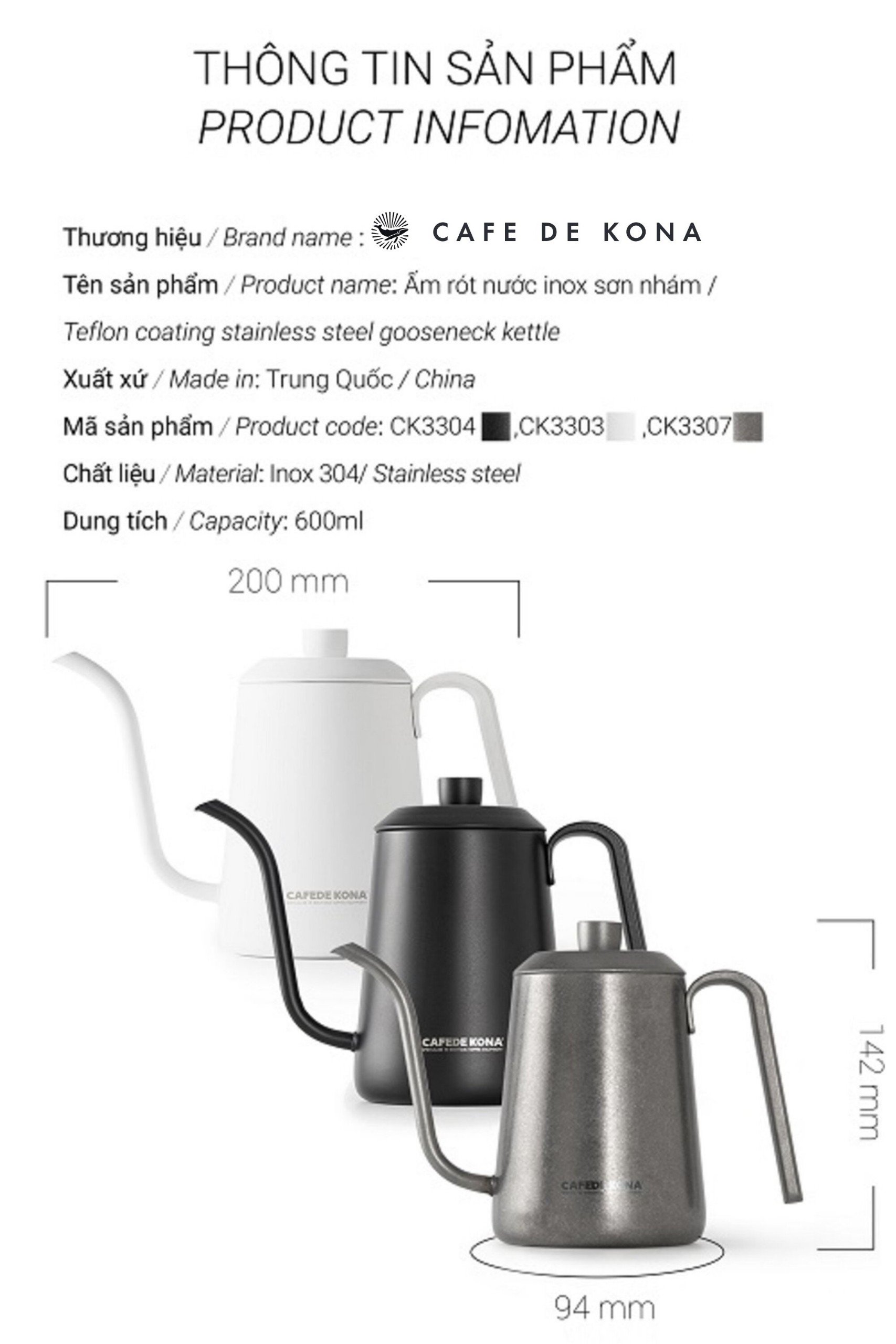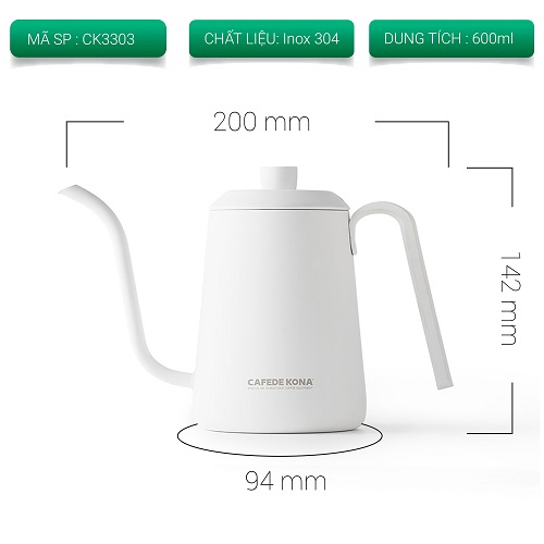🔥 ẤM RÓT NƯỚC NÓNG PHA CÀ PHÊ POUR OVER BẰNG INOX - CÁN CẦM KIM LOẠI CAFEDE KONA 🔥
