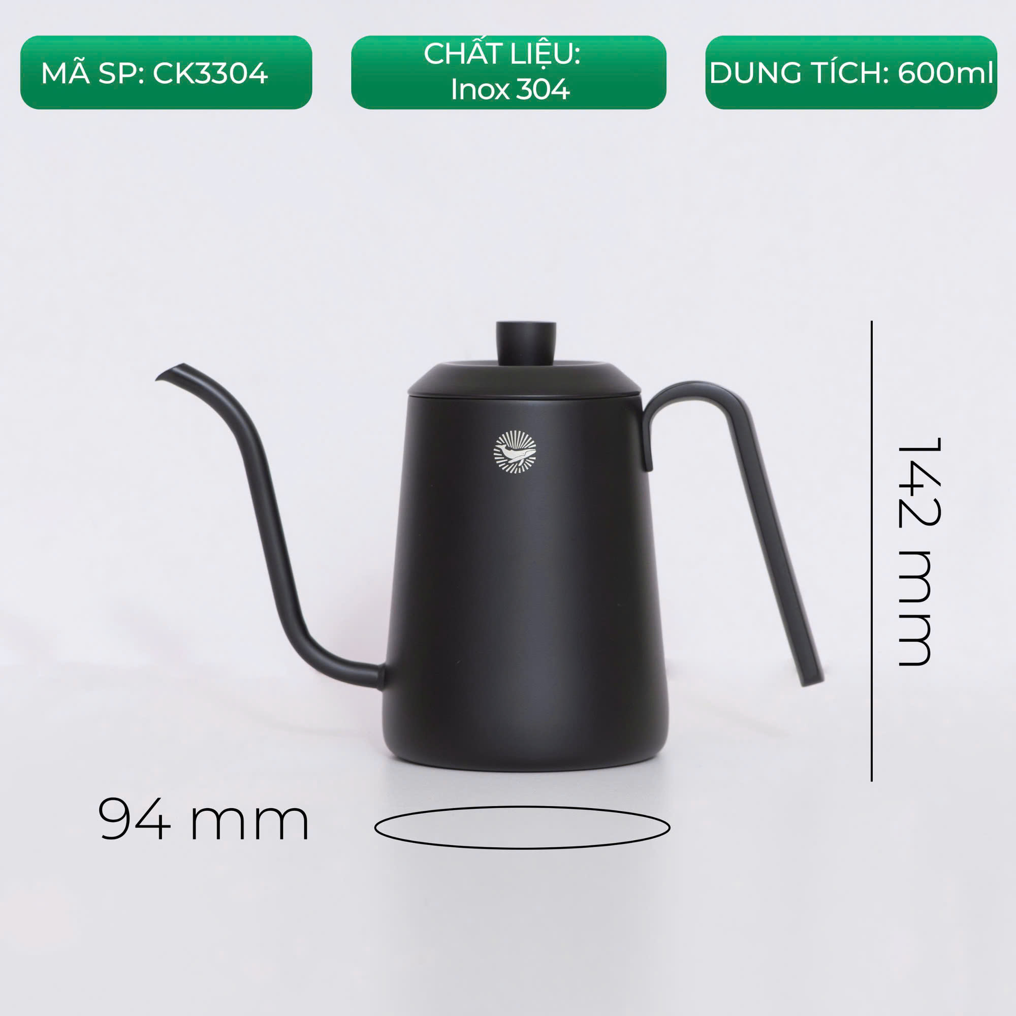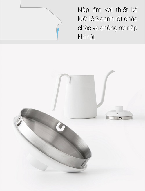 👉Ấm rót được làm từ chất liệu thép không gỉ có khả năng chống mài mòn cao. Chiếc vòi cổ ngỗng mềm mại cho dòng chảy ổn định. Miệng vòi với thiết kế độc nhất giúp dòng nước chảy góc vuông 90 độ khi Pour. Mặt đáy phẳng phù hợp với mọi loại bếp phổ biến.