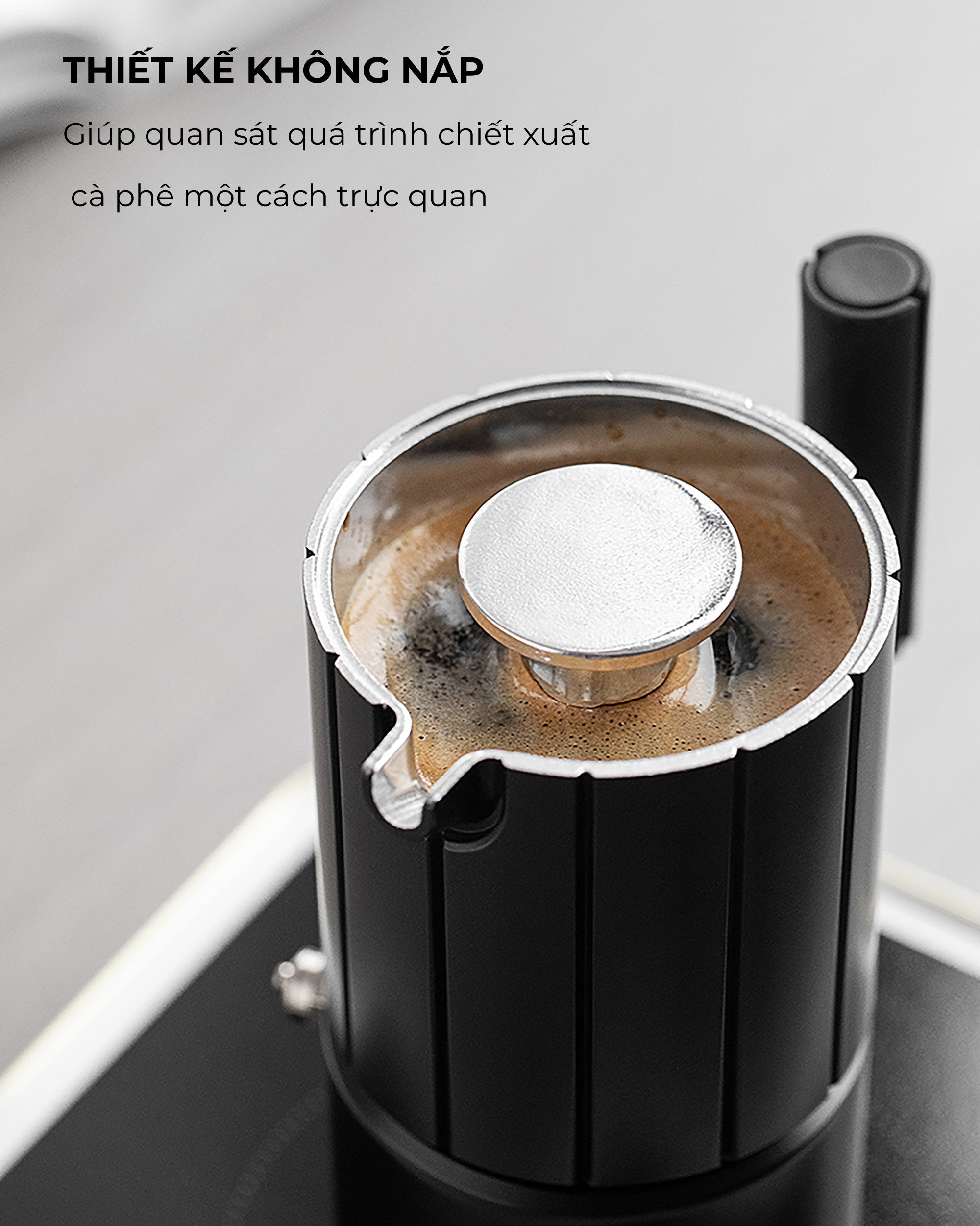 ✅ Thiết không nắp đậy, giúp quan sát được quá trình chiết xuất cà phê.