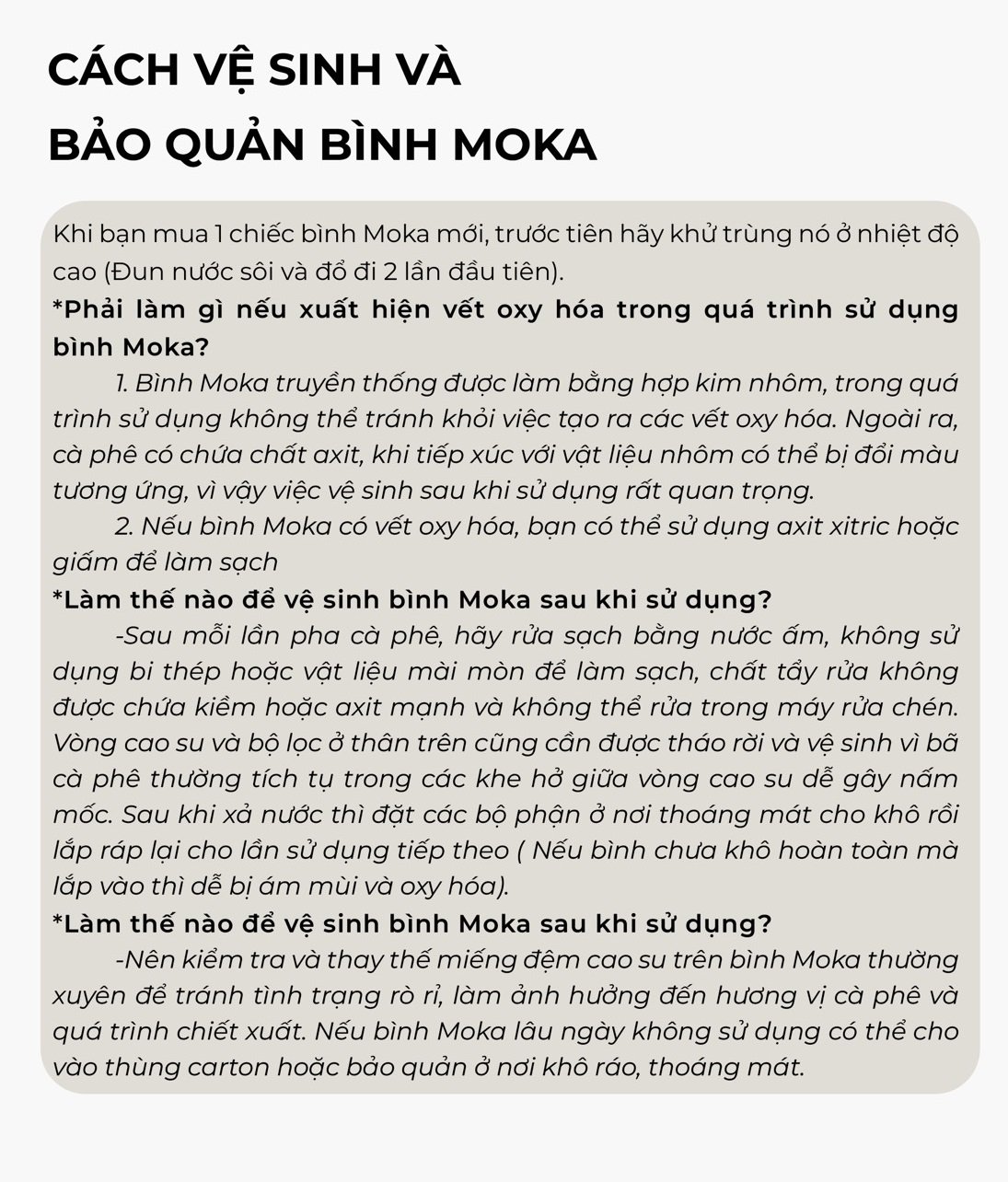 📌LƯU Ý: Bình Moka Cafede Kona chỉ dùng được trên bếp gas, bếp hồng ngoại và bếp điện. Không sử dụng được trên bếp từ.