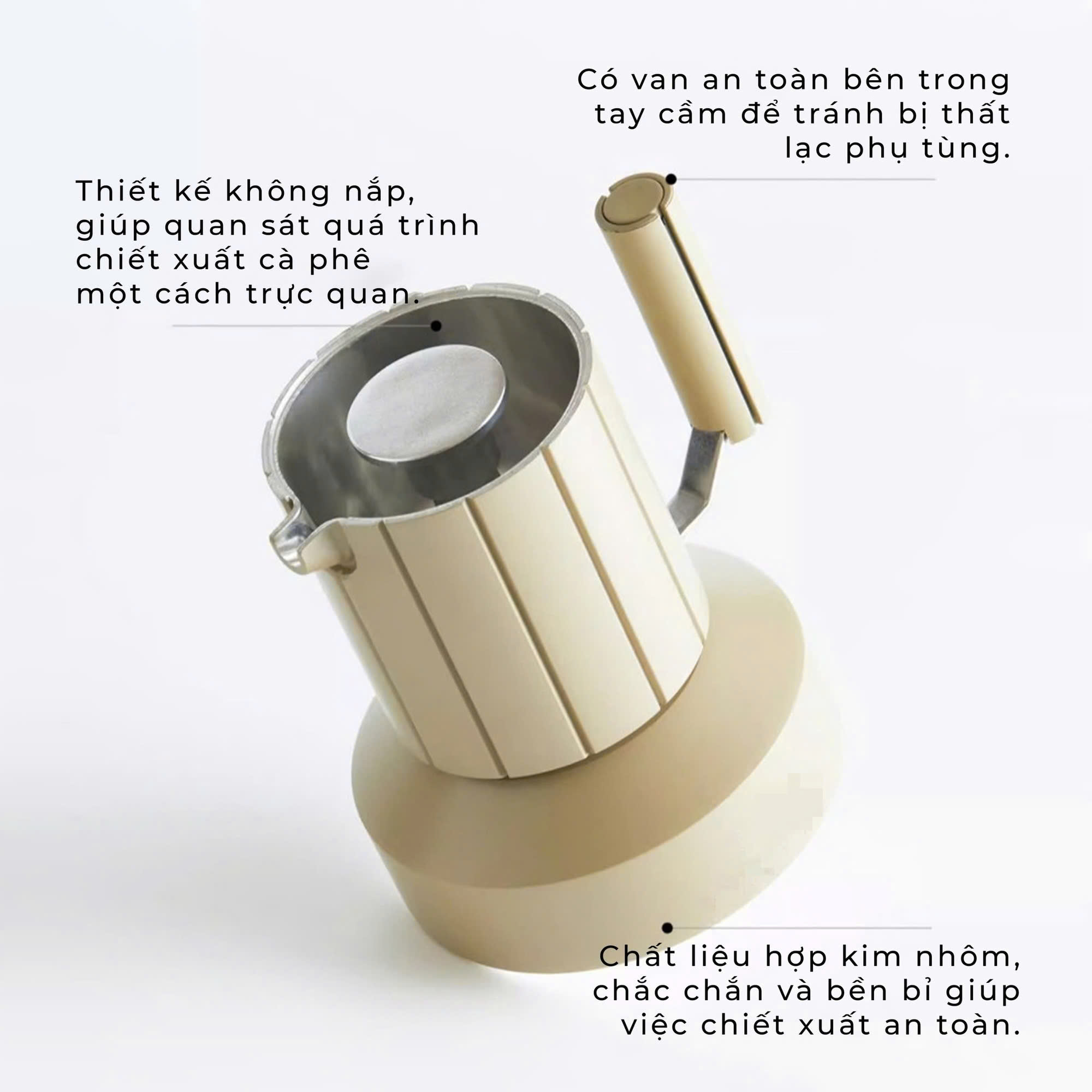 ✅ Thiết không nắp đậy, giúp quan sát được quá trình chiết xuất cà phê.