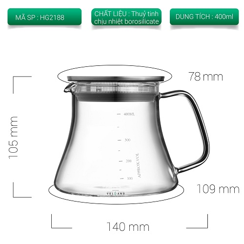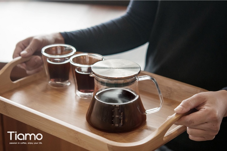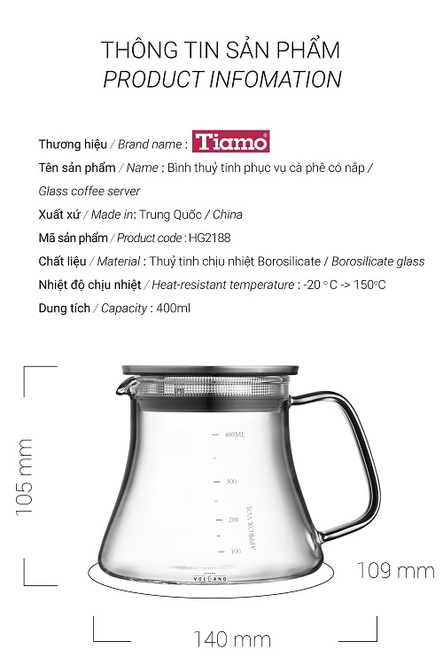 Tên sản phẩm : Bình pha cà phê thủy tinh chịu nhiệt Tiamo 400ml nắp inox