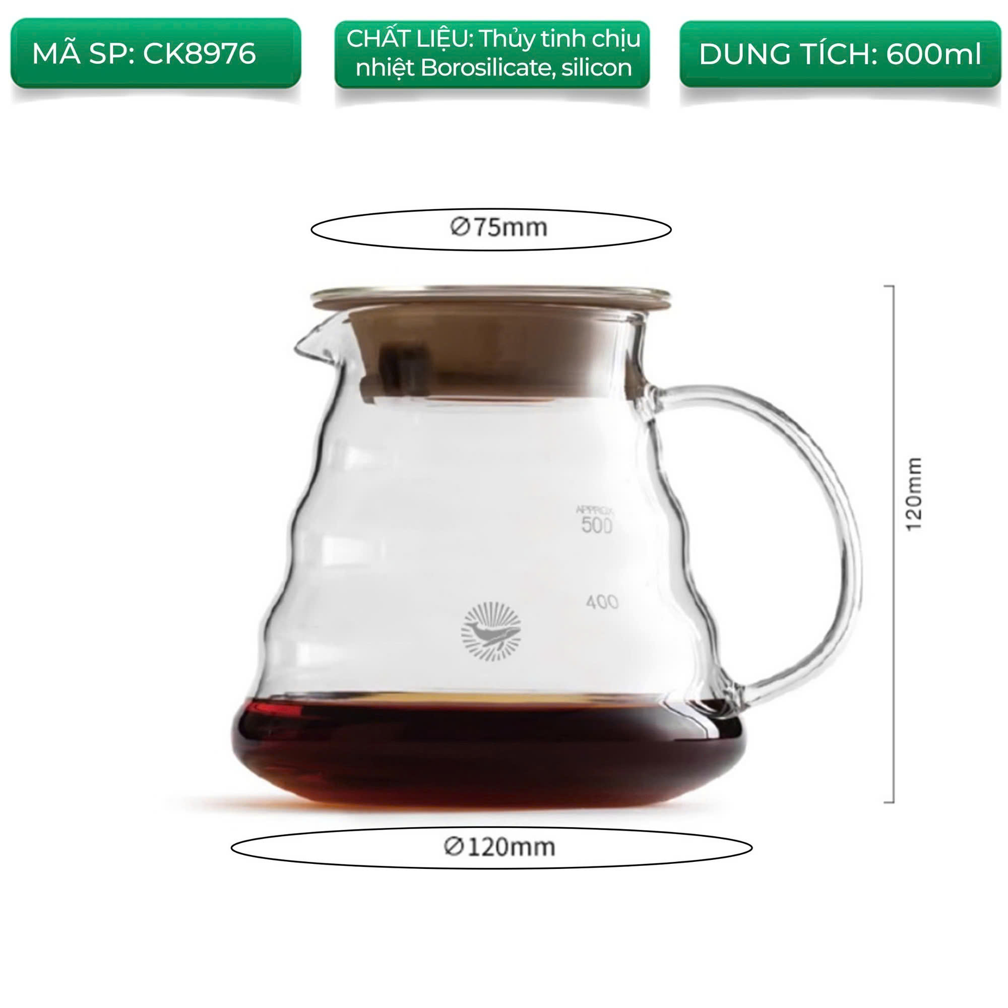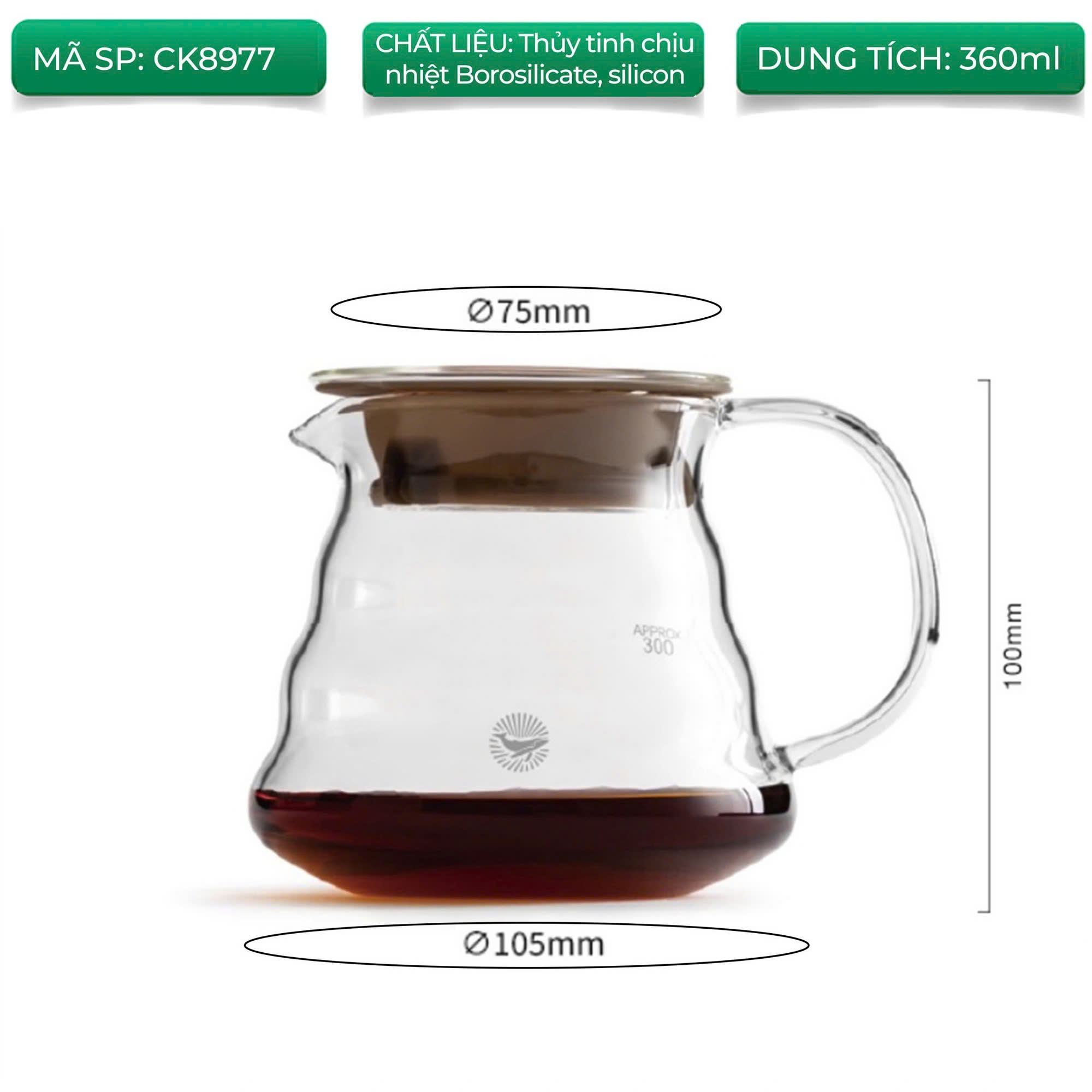 ▪Bình làm từ thủy tinh trong suốt, quan sát được màu sắc chân thực của cà phê.