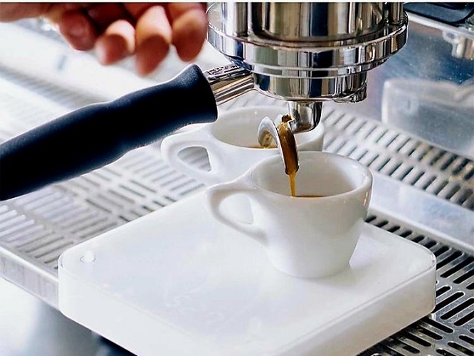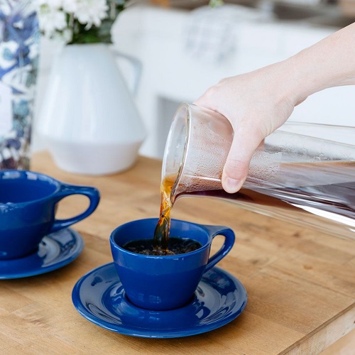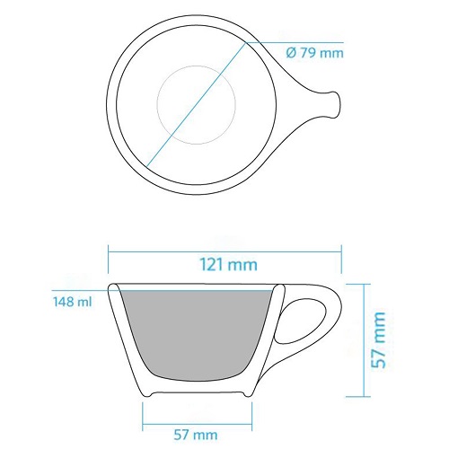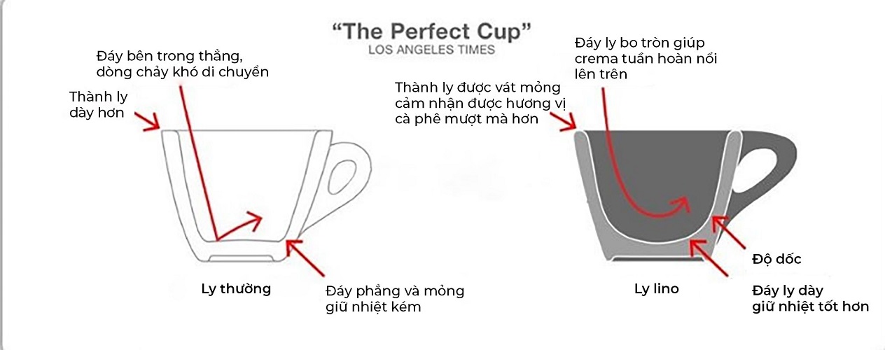 Độ cong bên trong của mỗi cốc được tối ưu hóa cho nghệ thuật pha cà phê và cách nhiệt, và tay cầm, phẳng với vành cốc, đảm bảo sự thoải mái và kiểm soát cho nhân viên pha chế cũng như người uống.