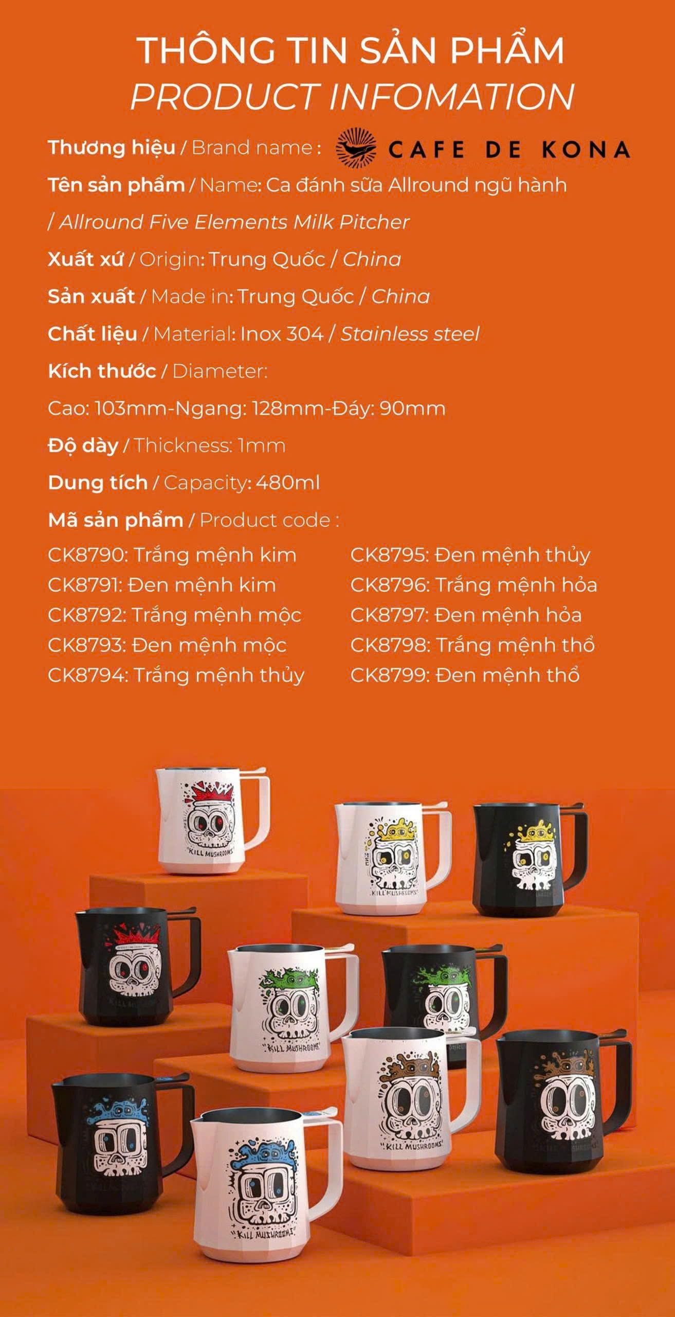 Ca đánh sữa ngũ hành All Round là sản phẩm lý tưởng dành cho những người yêu thích nghệ thuật pha chế chuyên nghiệp. Với thiết kế độc đáo và tay cầm tiện dụng, sản phẩm sẽ giúp bạn tạo ra những tách cà phê, latte tuyệt vời.