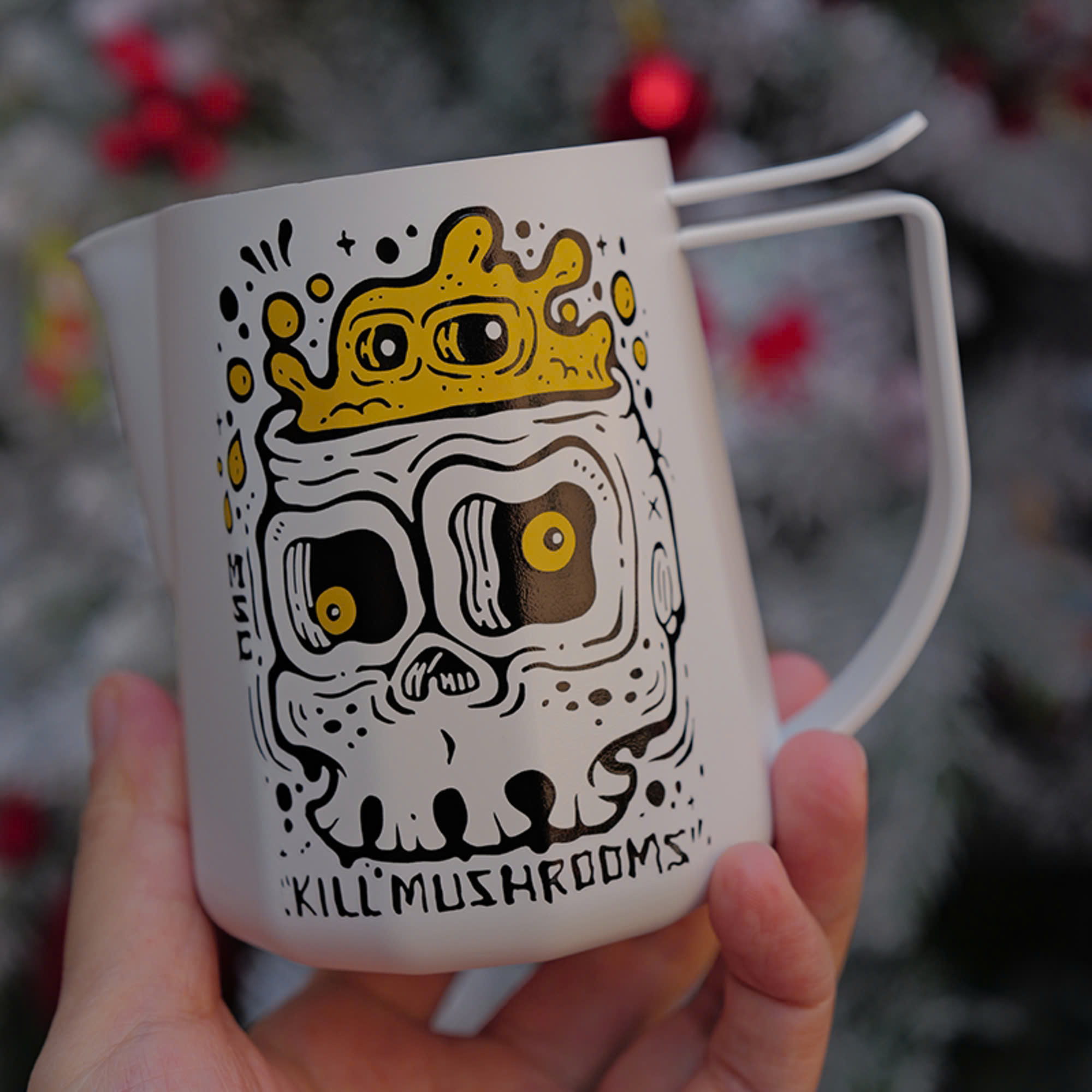 o Thẩm mỹ: Mỗi chiếc ca được trang trí họa tiết "Kill Mushrooms" cá tính.