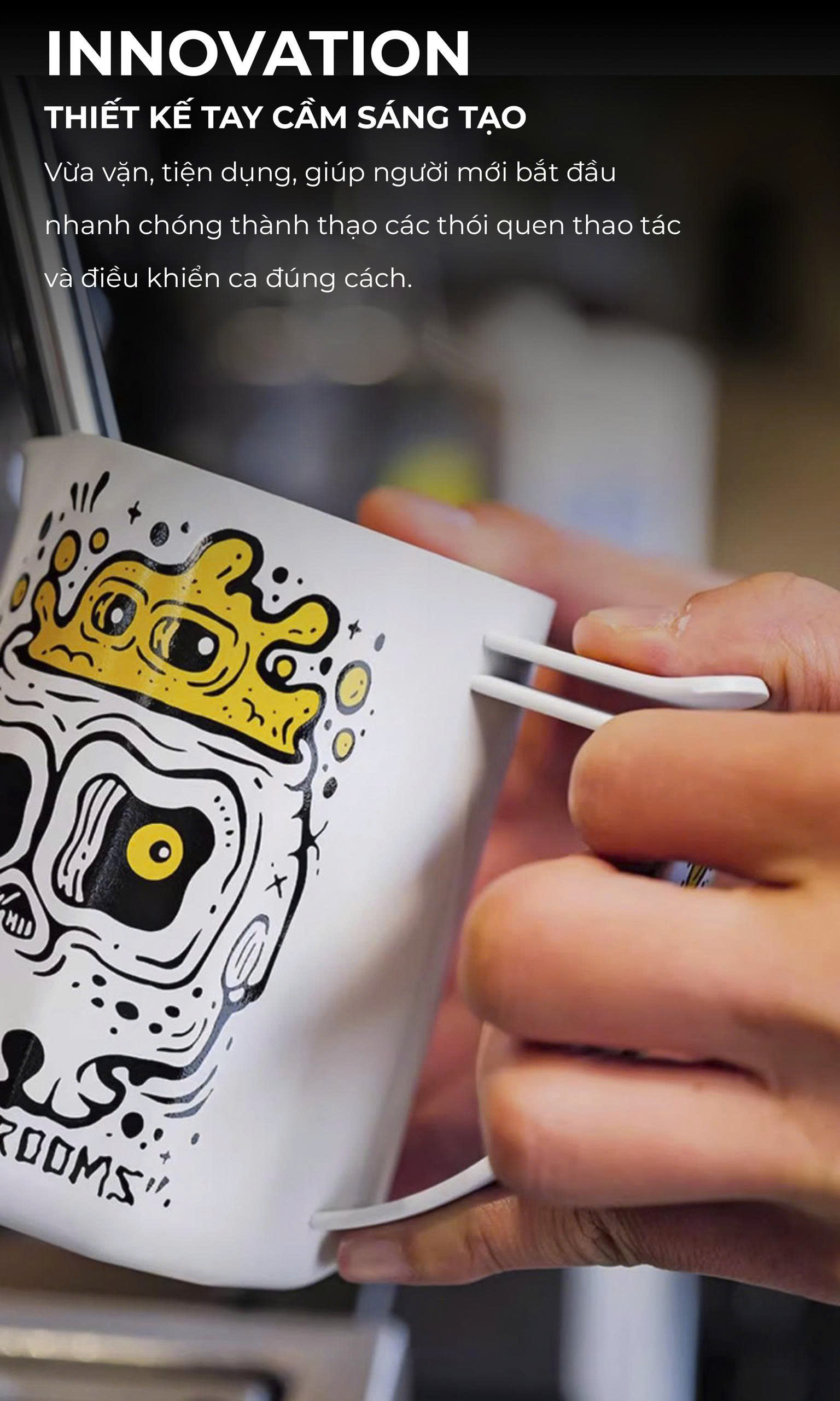 • Thiết kế tay cầm sáng tạo: Hỗ trợ dễ dàng khi pha chế, mang lại sự thoải mái khi sử dụng.