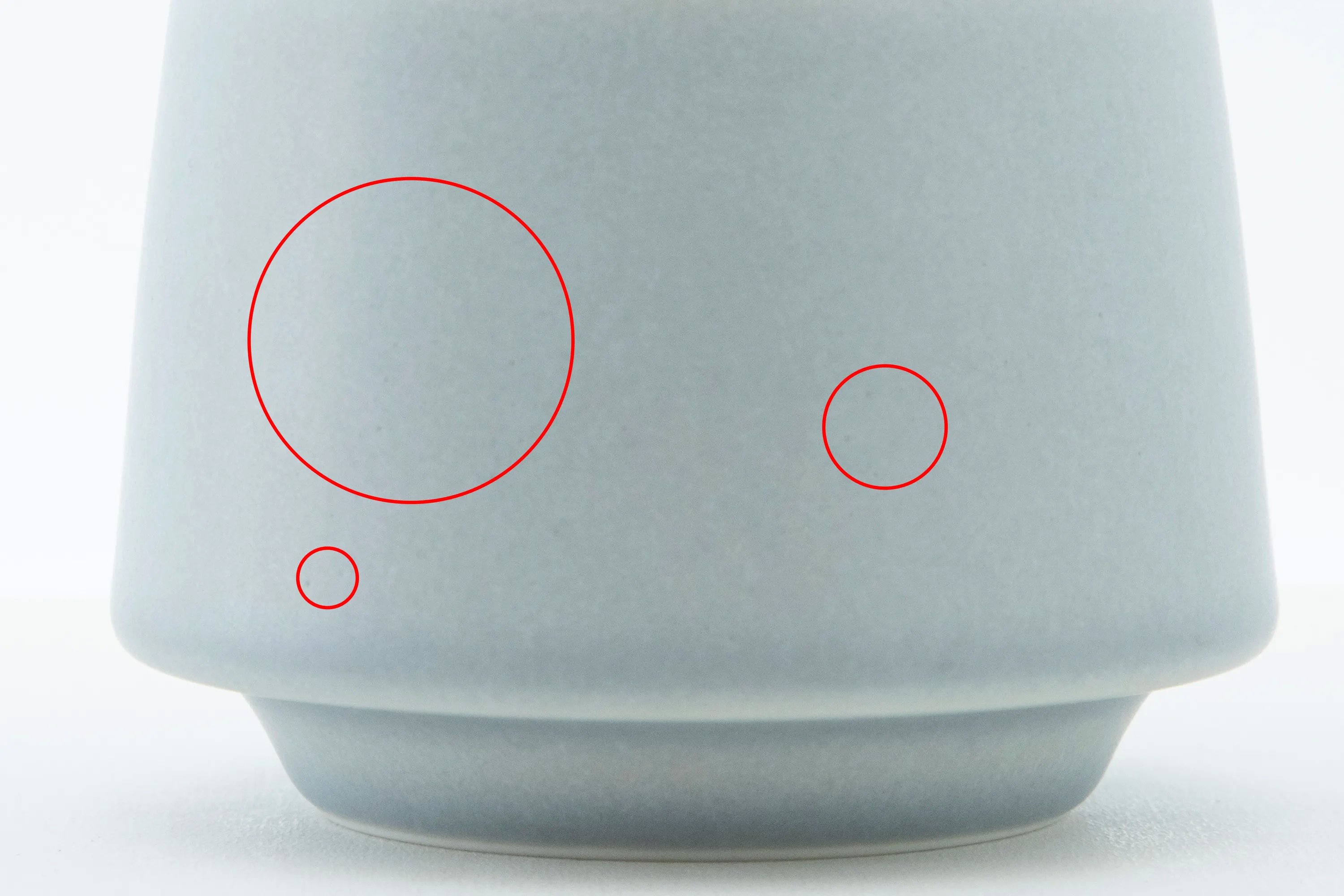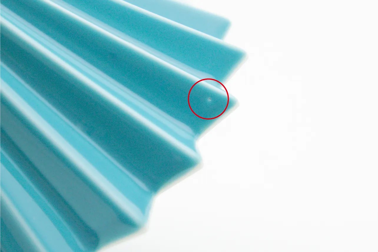 Các mạch tráng men có thể có các vết lõm nhỏ.Đó là một hiện tượng đặc biệt đối với đồ gốm sứ. Những vết lõm nhỏ được hình thành khi chất hữu cơ trên bề mặt bị đốt cháy lúc tráng men, và nó không phải là sản phẩm lỗi.