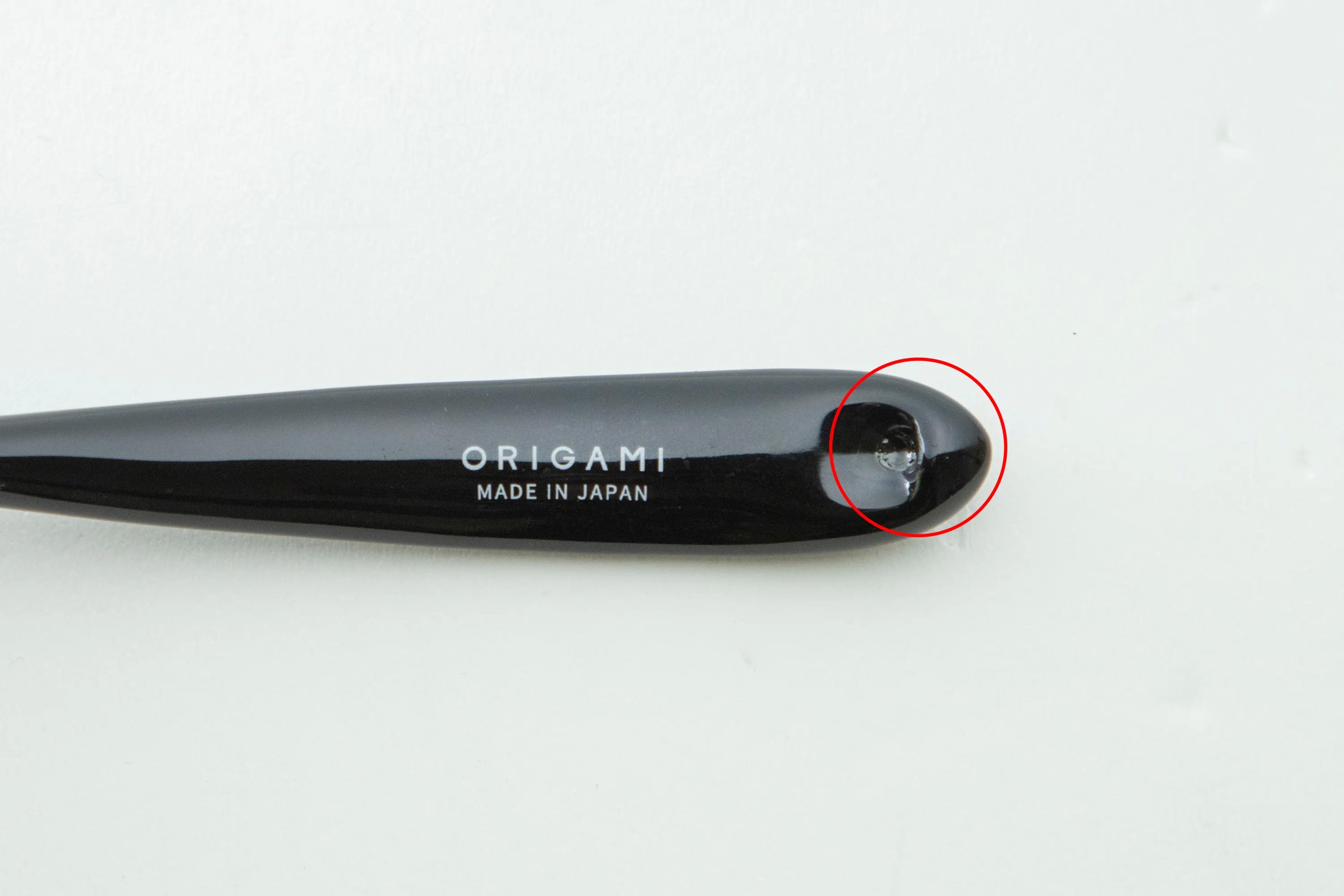 Logo của Origami được vẽ bằng kỹ thuật sơn phủ và được in dưới lớp men nên sau khi tráng men thì logo có thể bị chảy hoặc mờ.