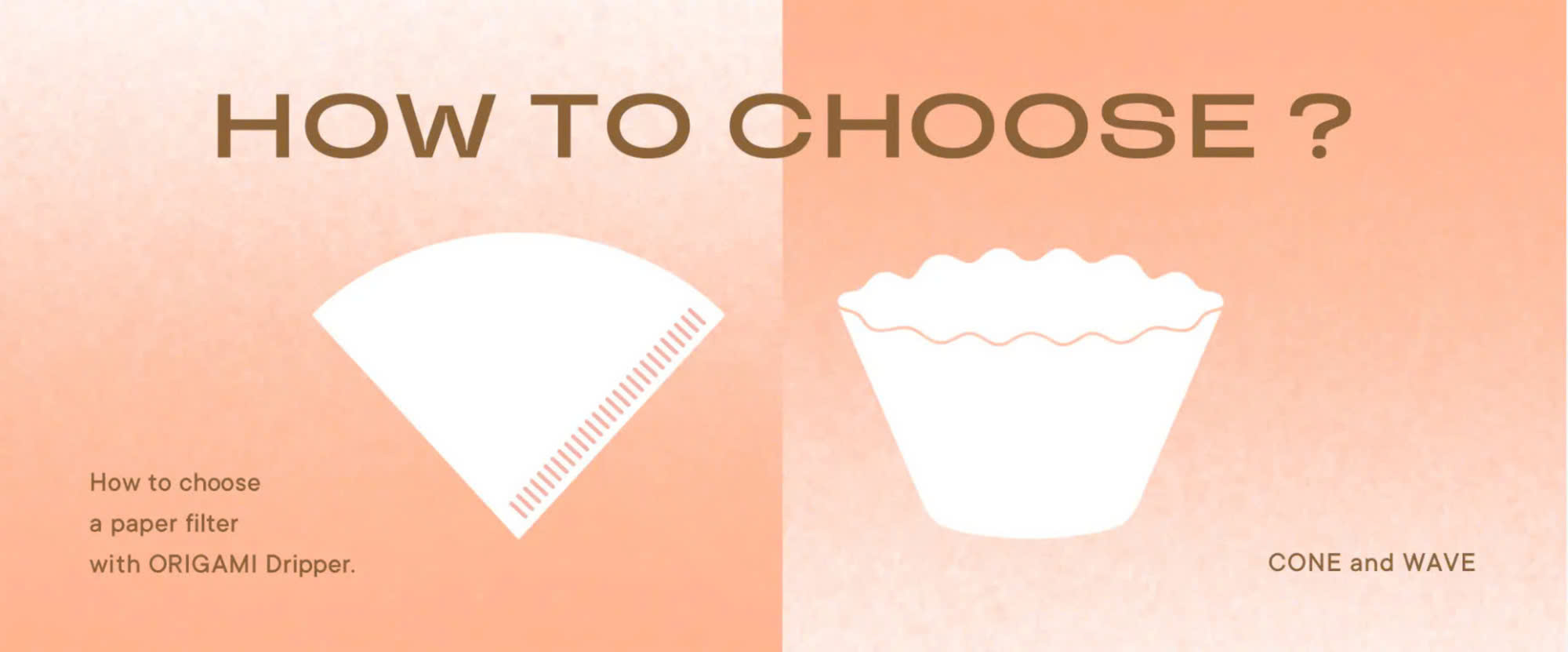 Phễu pha cà phê ORIGAMI có thể sử dụng được cả hai loại giấy lọc: hình nón (CONE) và hình sóng (WAVE).
