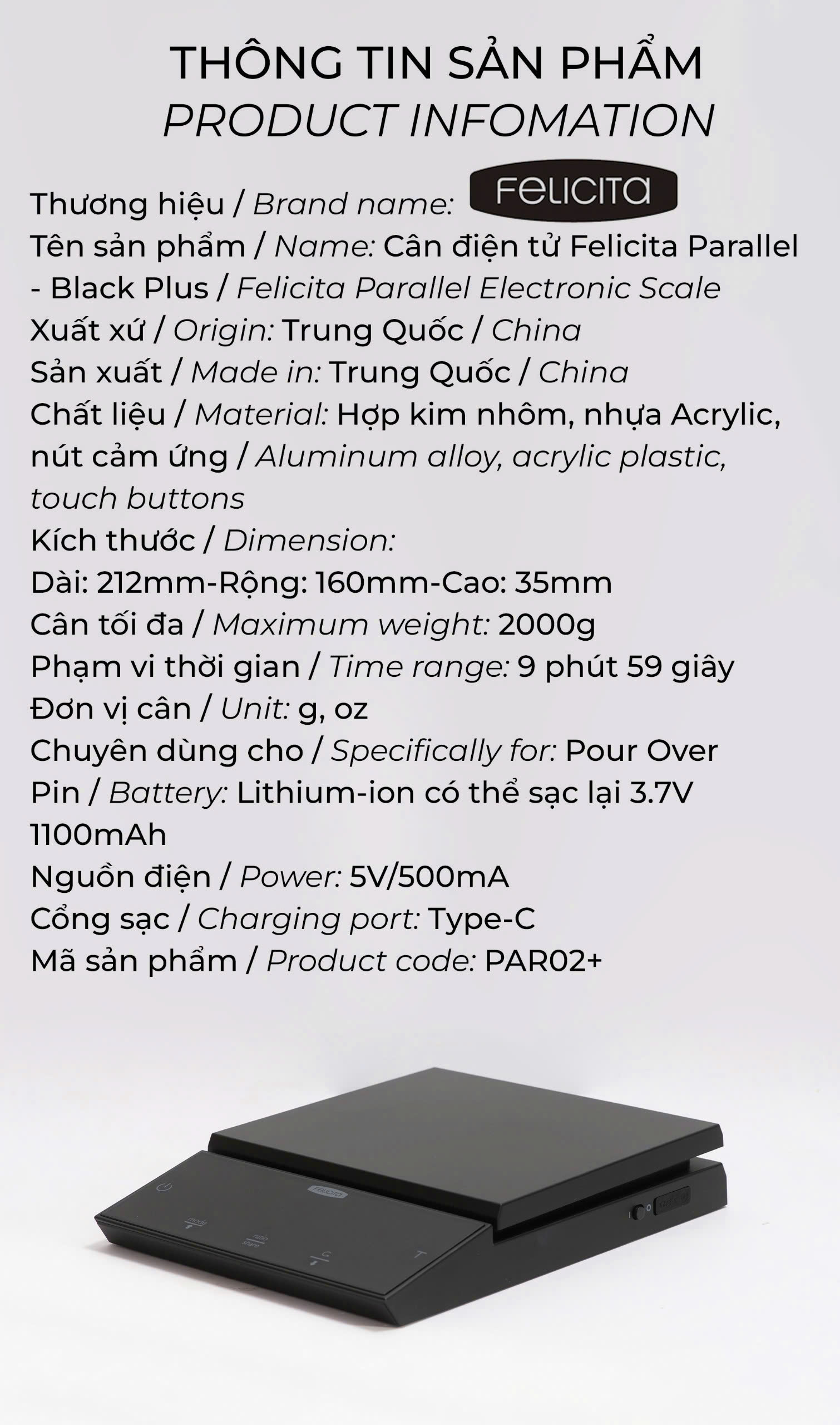🔥 CÂN ĐIỆN TỬ PHA CÀ PHÊ FELICITA PARALLEL– BLACK PLUS 🔥