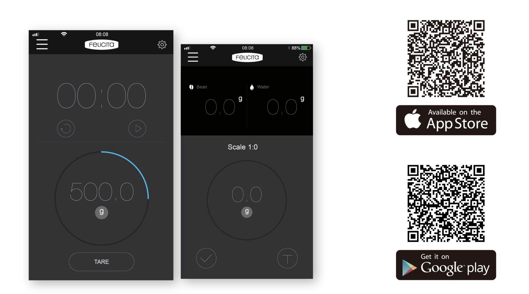 ☑️ Tải App miễn phí, kết nối Bluetooth với điện thoại (iPhone & Android) – theo dõi cân, thời gian & tỷ lệ pha trực tiếp trên màn hình điện thoại.
