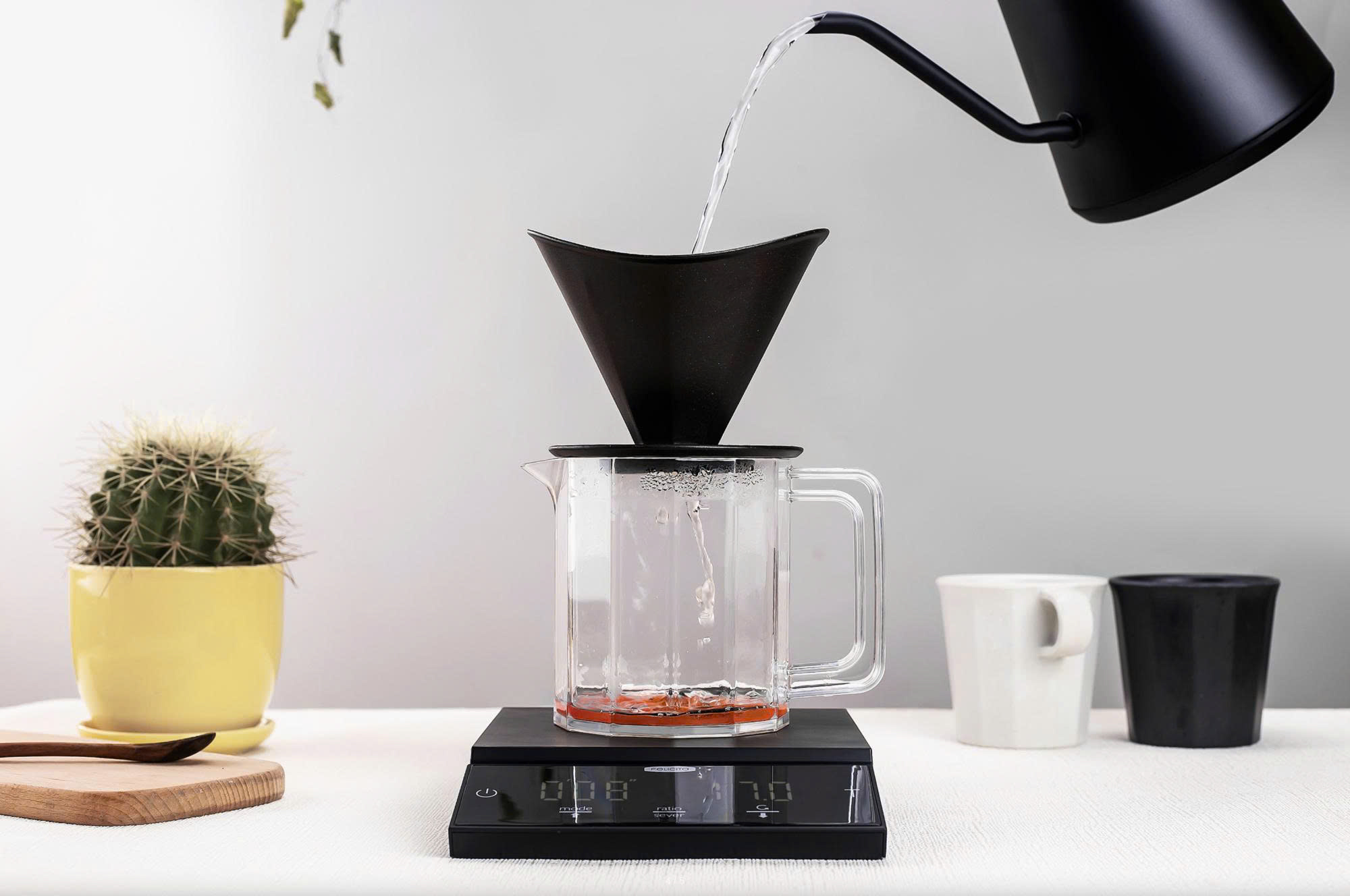 ☑️ Tự động tính toán tỷ lệ cà phê ~ nước – giúp bạn pha theo công thức đúng chuẩn hơn mà không cần tính tay!