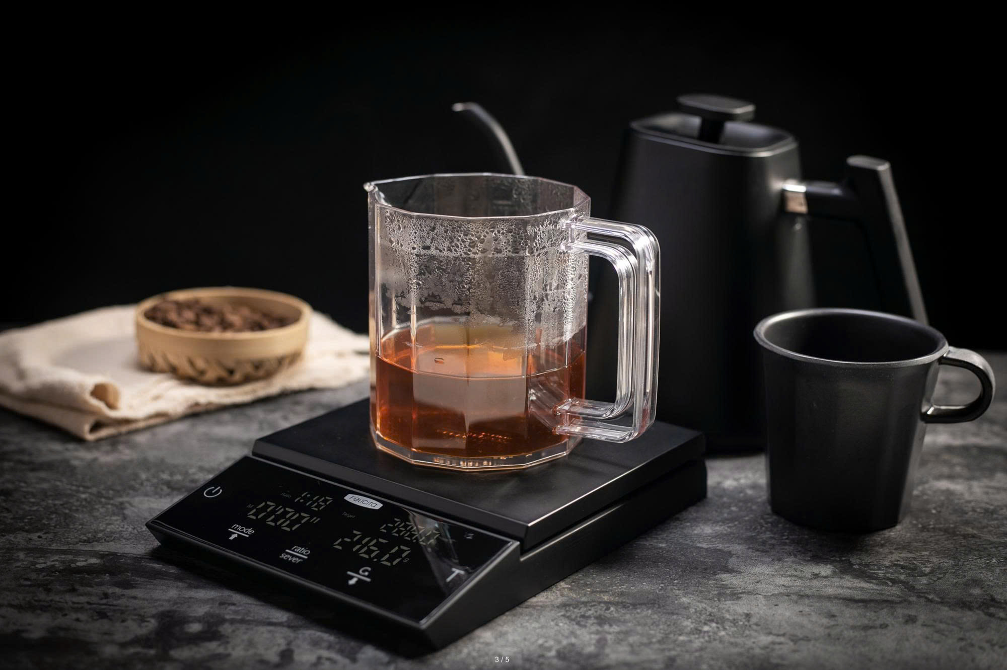 ☑️ Chức năng stopwatch & auto-tare (tự trừ khối lượng lẫn bấm giờ) – cực tiện cho các bước brew phức tạp.