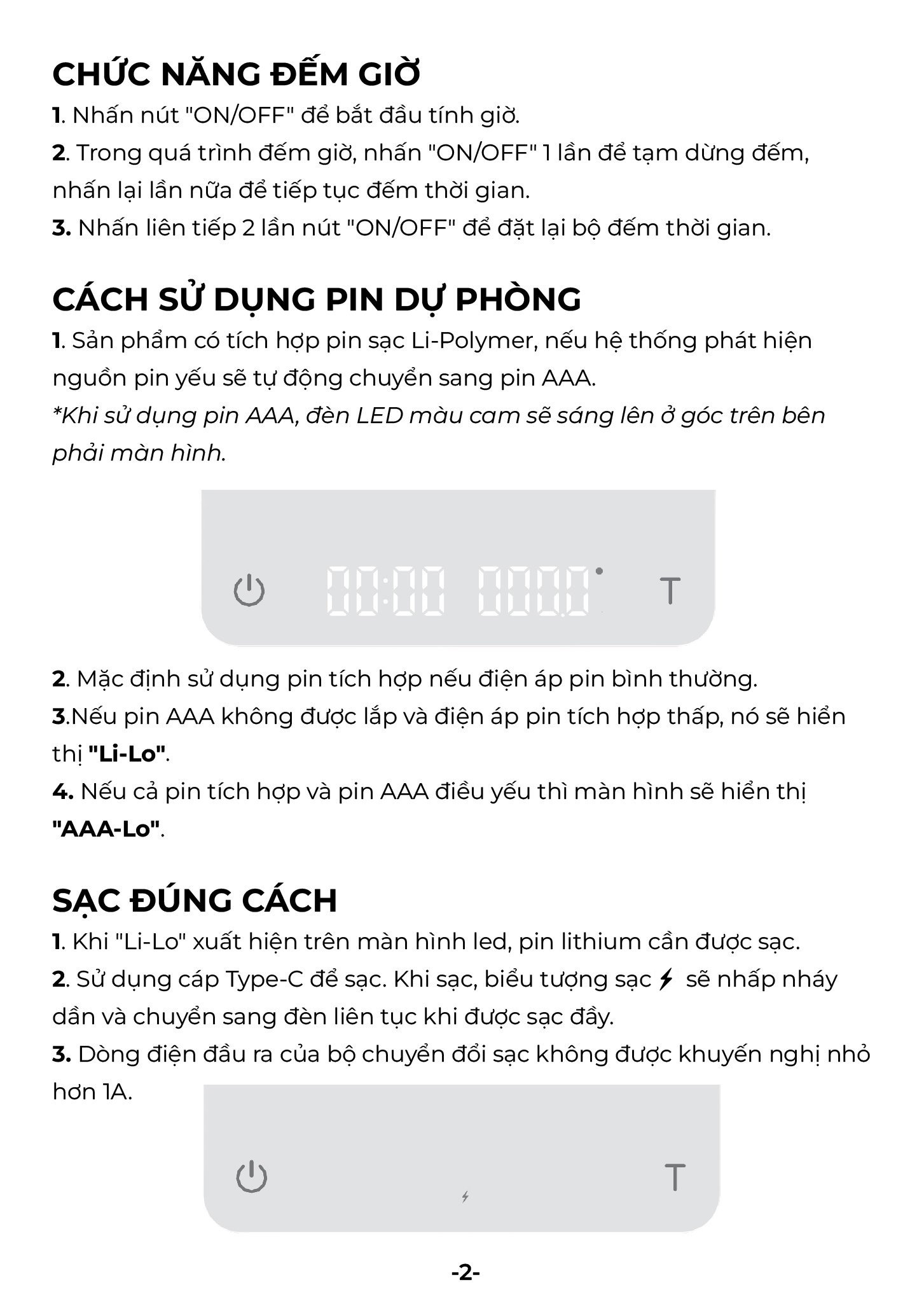 ✅ Sử dụng pin Lithium sạc lại qua cổng USB type C tích hợp thêm khe cắm pin mở rộng với 3 viên AAA giúp cân hoạt động liên tục trong trường hợp không thể sạc.