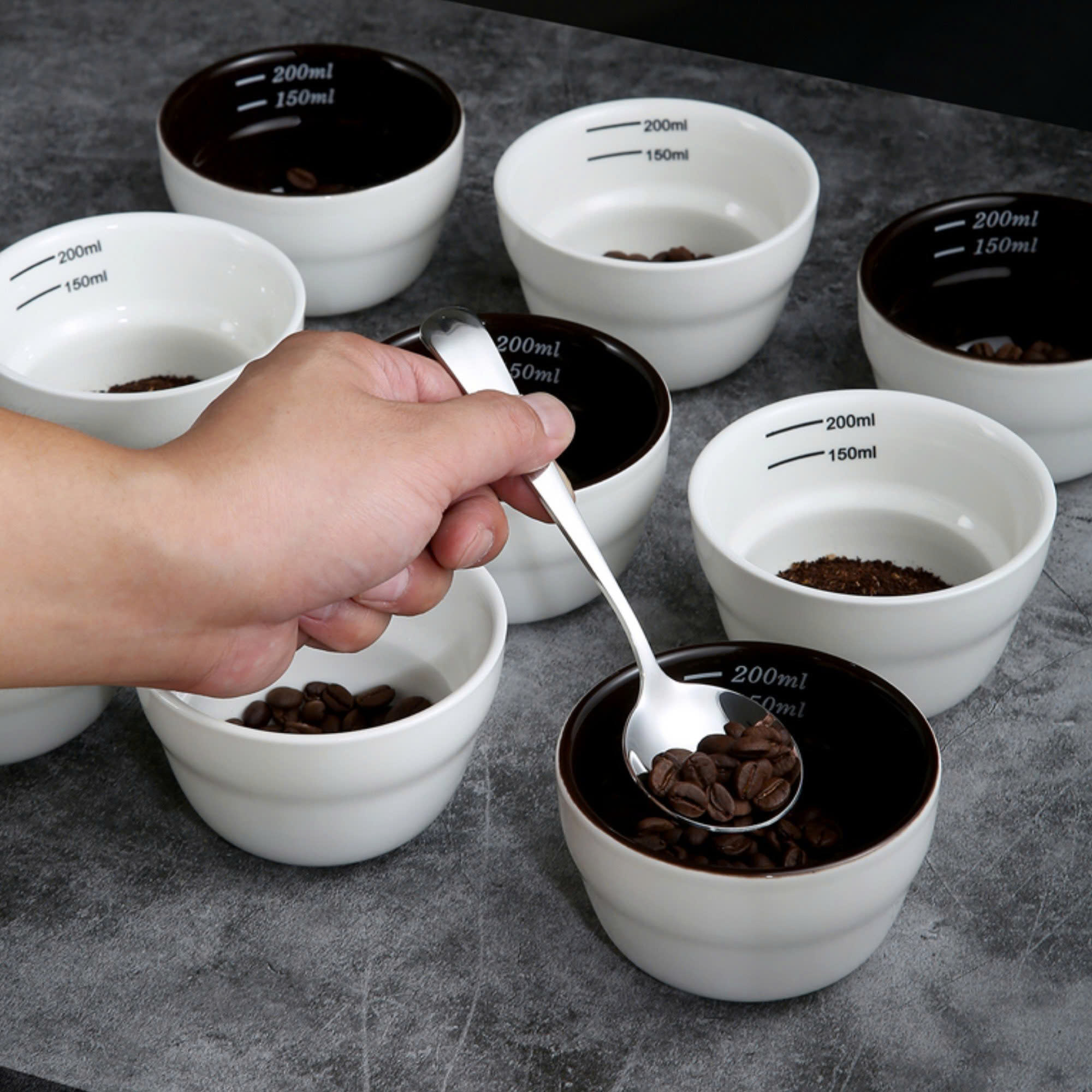 Và không thể thiếu trong số những phụ kiện bắt buộc phải có trong quá trình cupping chất lượng cà phê. Đó chính là “Chén thử nếm” được thiết kế riêng với tiêu chuẩn quốc tế SCAA.