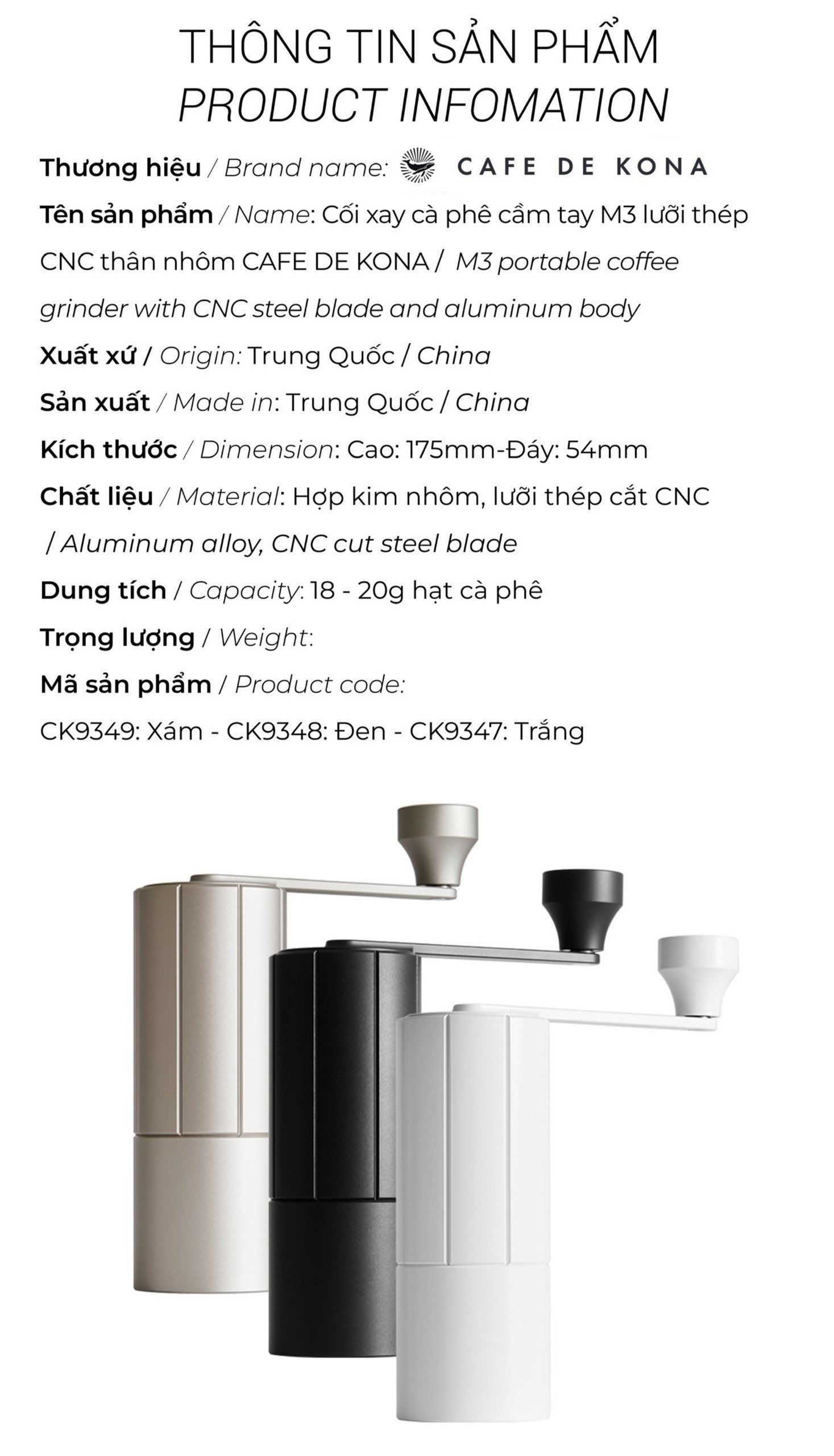 💎CỐI XAY CÀ PHÊ CẦM TAY M3 THÂN NHÔM LƯỠI THÉP 💎