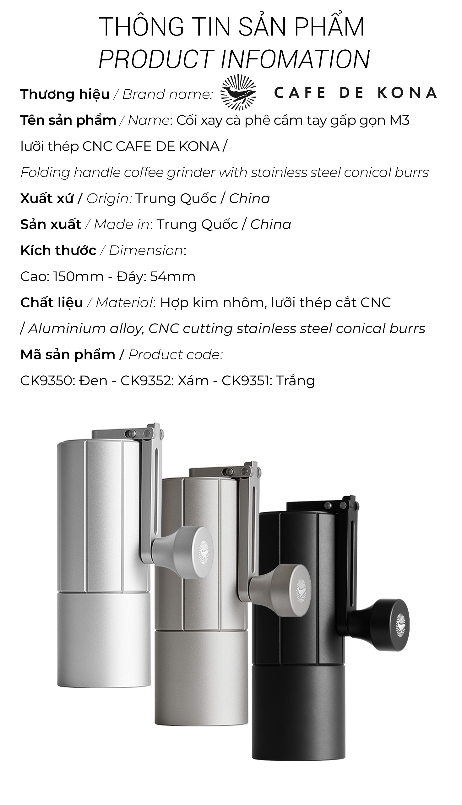 💎CỐI XAY CÀ PHÊ CẦM TAY M3 PRO THÂN NHÔM LƯỠI THÉP 💎