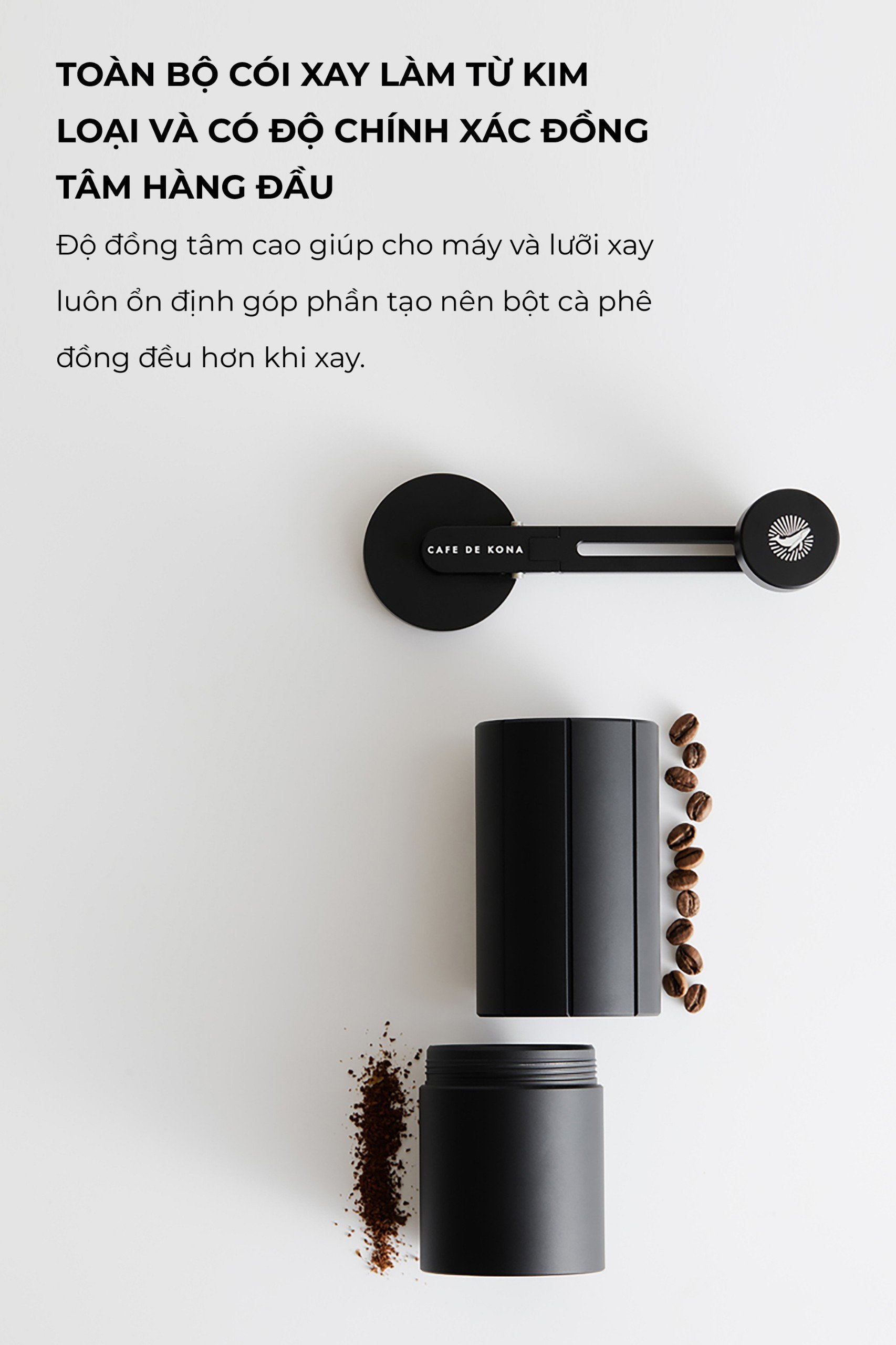 ◾Trục xay bằng thép cứng ổn định với 2 vòng bi trên dưới: Cho bột cà phê có độ đồng đều đáng ngạc nhiên.