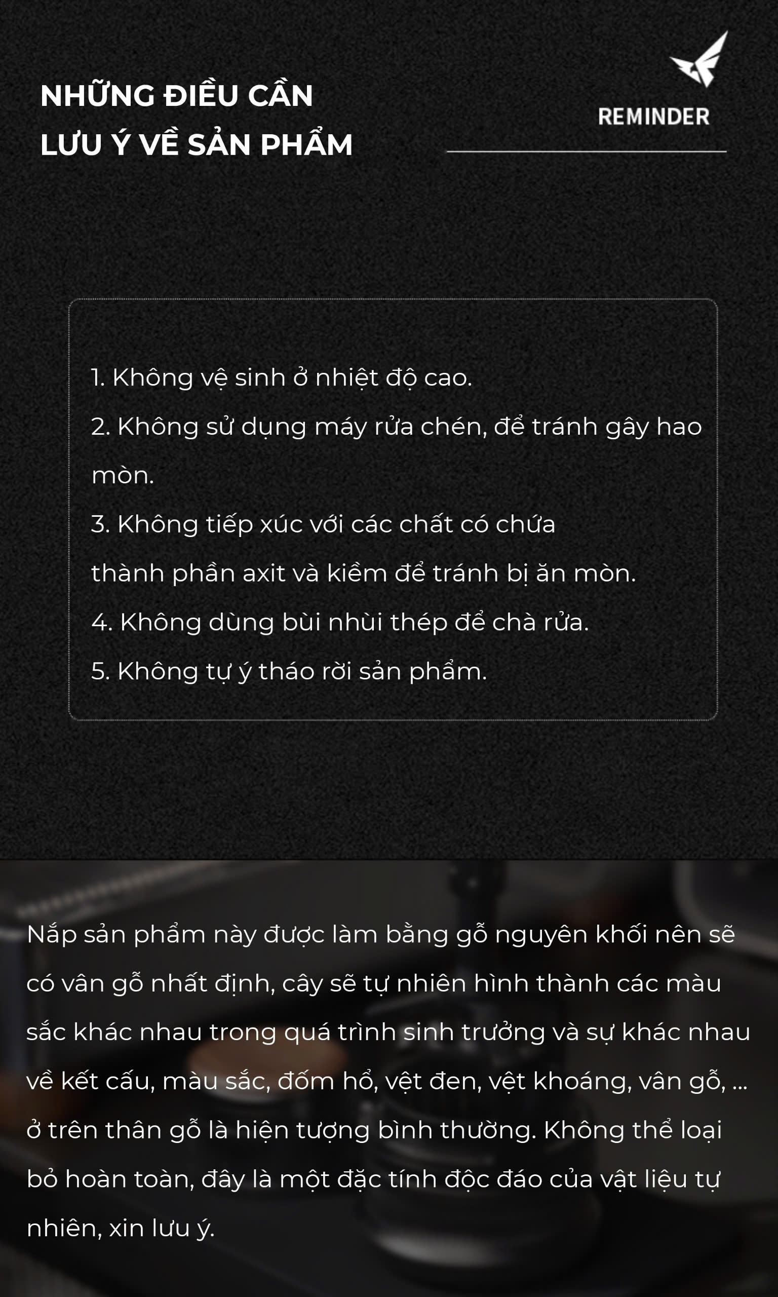➡️ Thiết kế nắp gỗ óc chó cao cấp, sang trọng và bền bỉ.