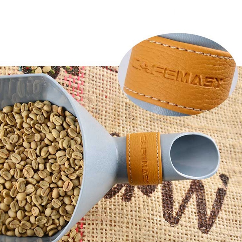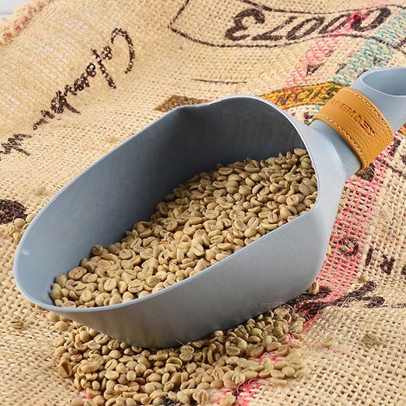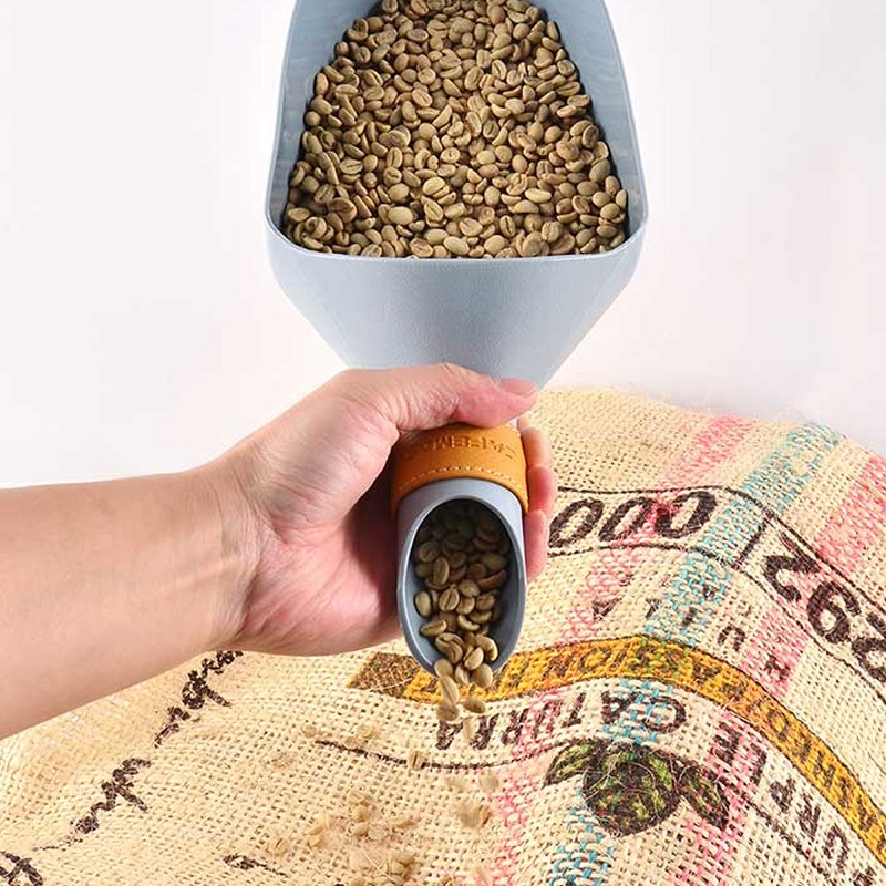 Xúc cà phê hạt, đặt lên cân, sau đó cho vào túi. Dụng cụ múc cà phê hạt, ngũ cốc bằng nhựa này có thể giúp bạn hoàn thành toàn bộ quá trình đóng gói dễ dàng hơn.