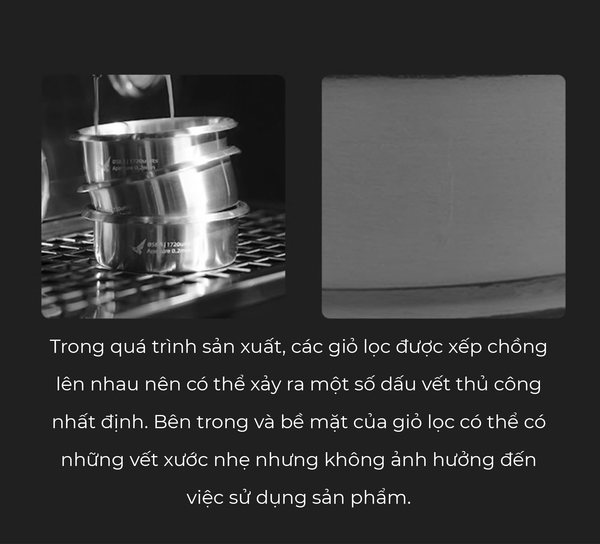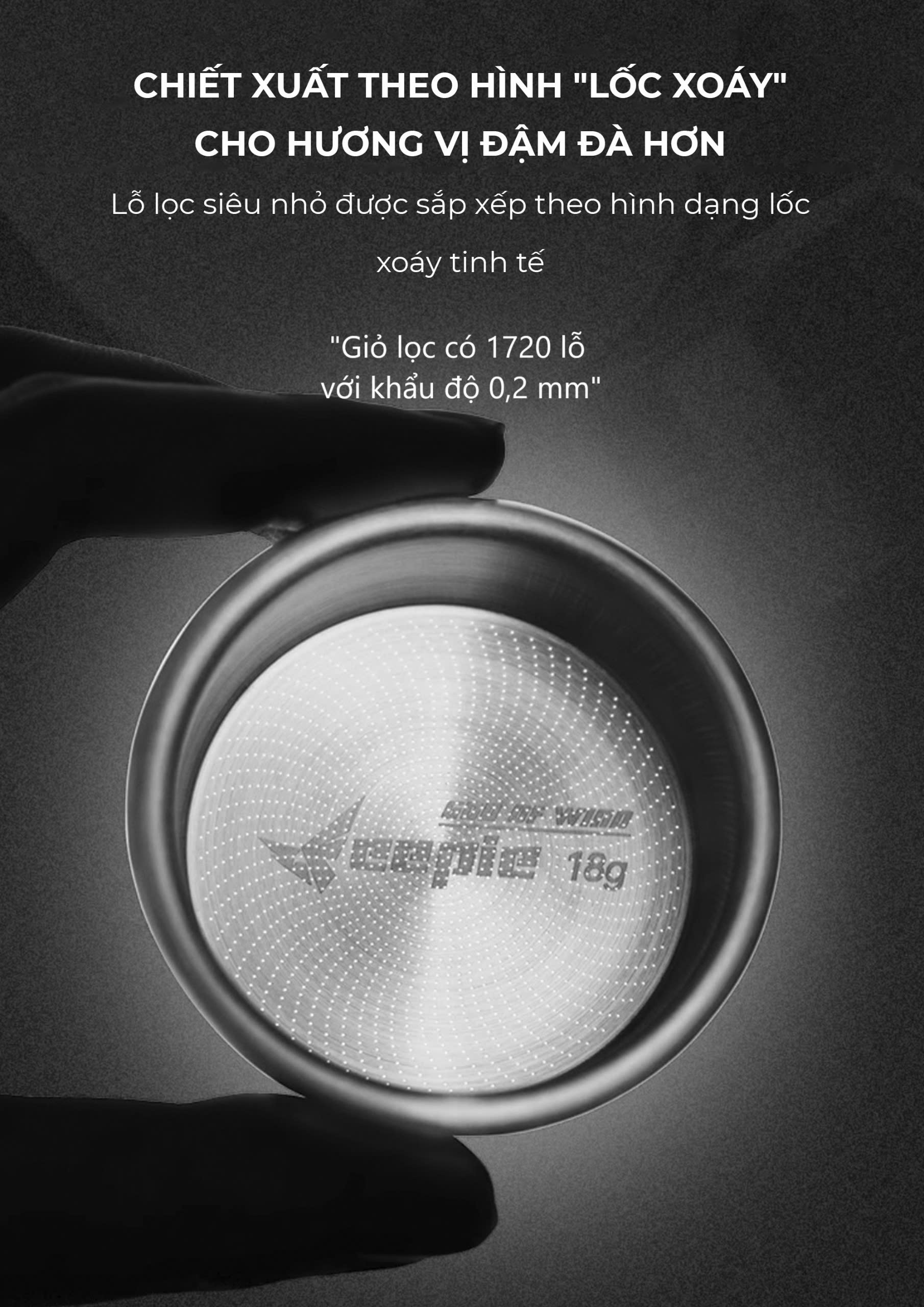 ➡️ Giỏ lọc có 1720 lỗ lọc với khẩu độ 0,2mm có độ chính xác cao giúp cải thiện tốc độ chiết xuất, tạo lớp crema đầy đặn hơn.