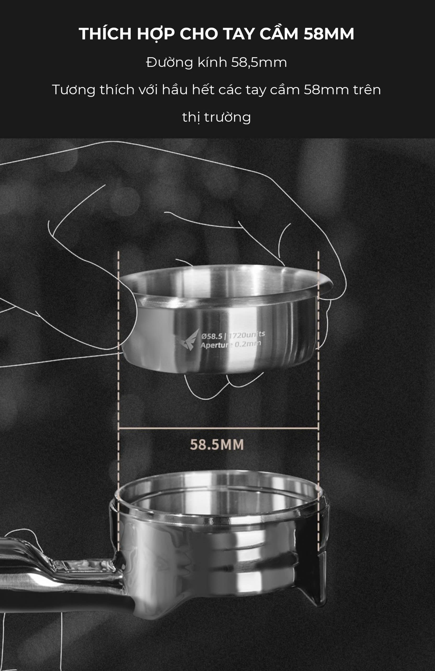 • Tương thích: Hầu hết tay cầm máy pha espresso 58mm phổ biến trên thị trường
