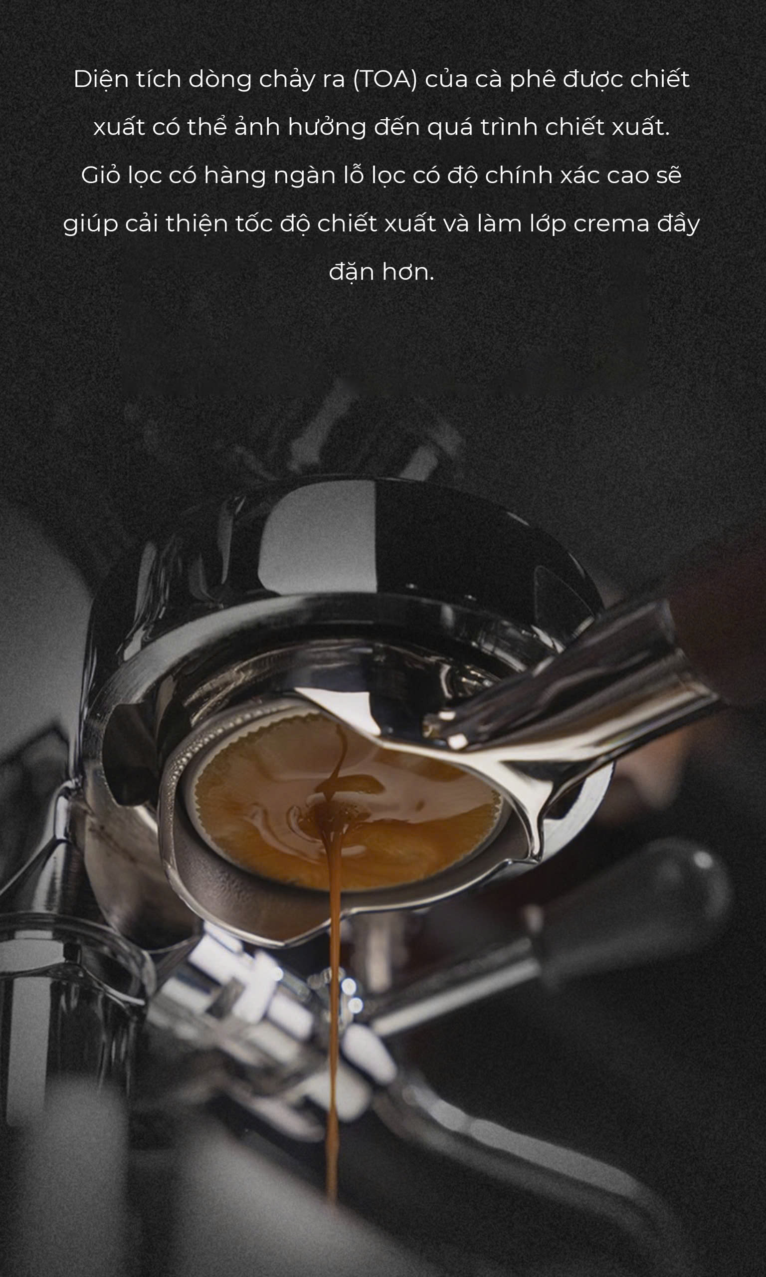 ➡️ Hệ thống lỗ nhỏ gia công chính xác giúp nước chảy ổn định, hạn chế kênh rãnh (channeling), tối ưu tỷ lệ chiết xuất espresso.