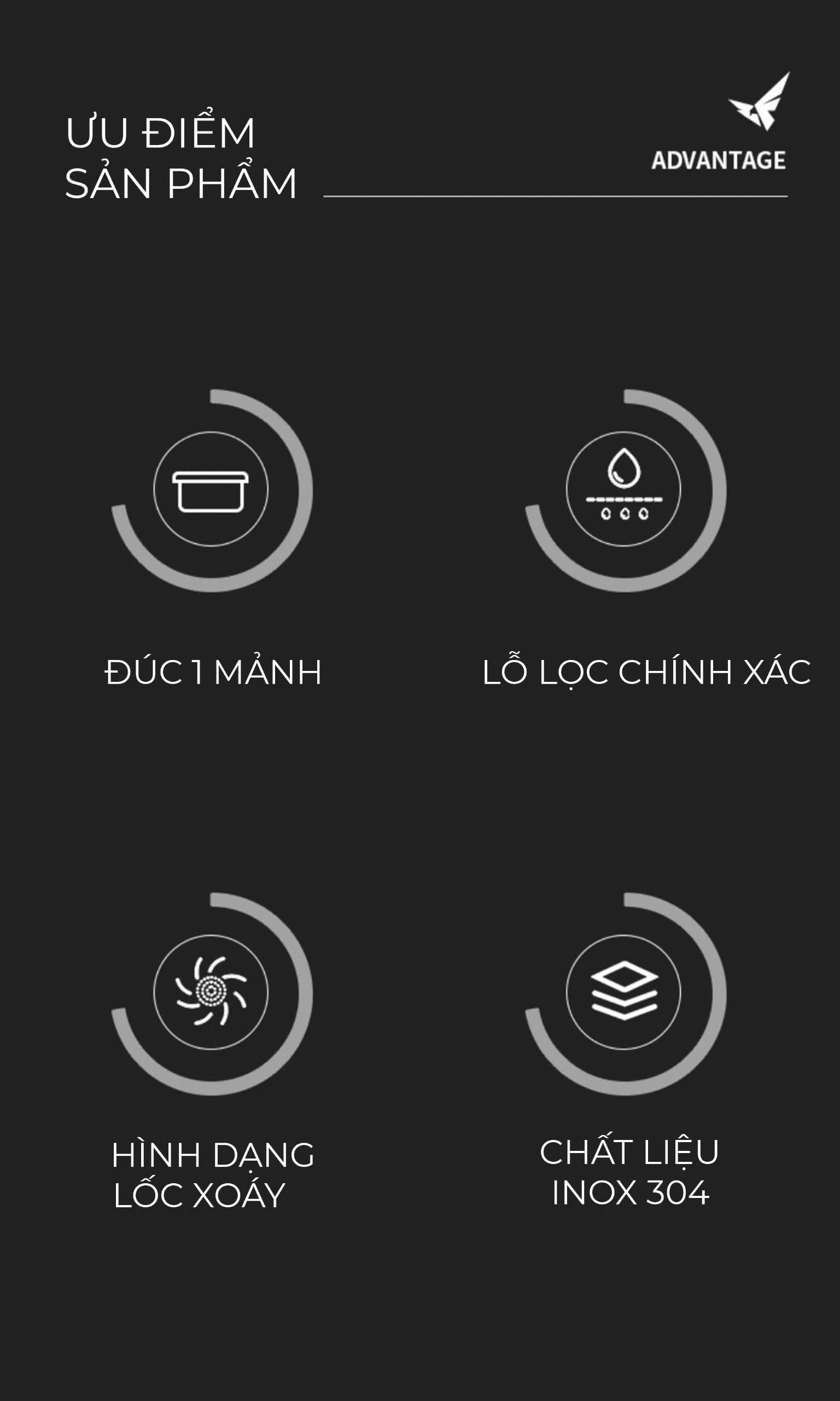 • Công nghệ: Lỗ lốc xoáy giúp tối ưu dòng chảy