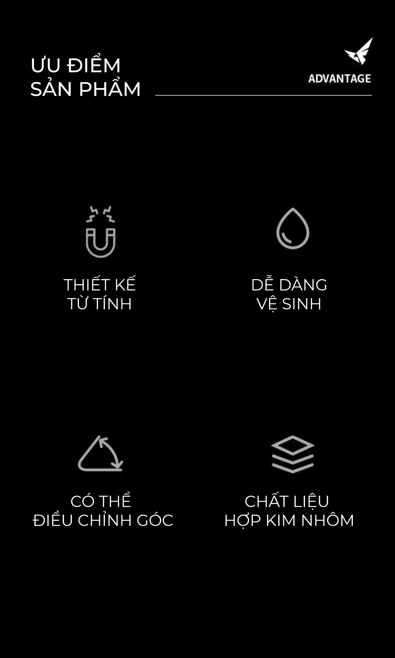 • Chất liệu: Hợp kim nhôm + Nam châm vĩnh cửu