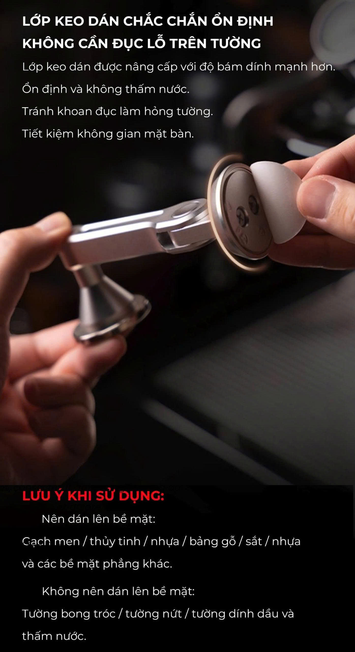 • Giá đỡ này có thể dán trên nhiều chất liệu khác nhau.