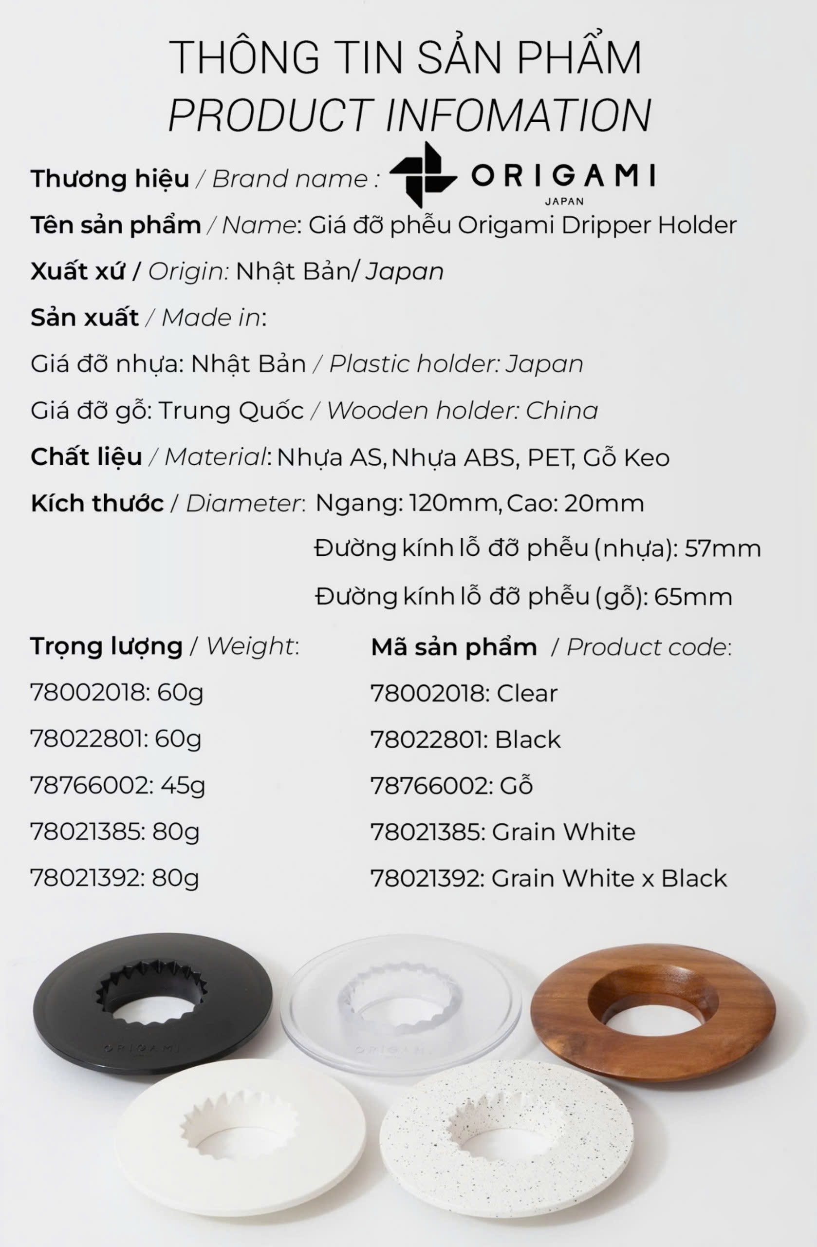 ◾ Origami Dripper Holder - Đế đỡ dành riêng cho phễu của Origami.