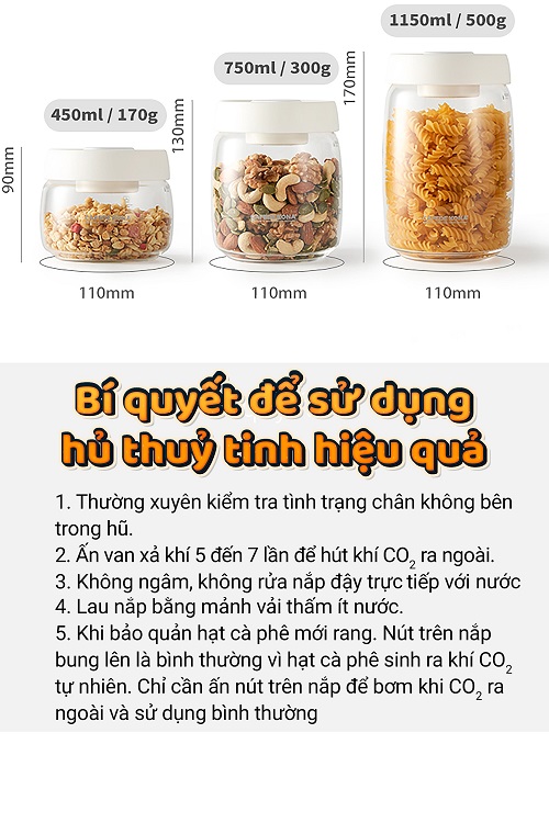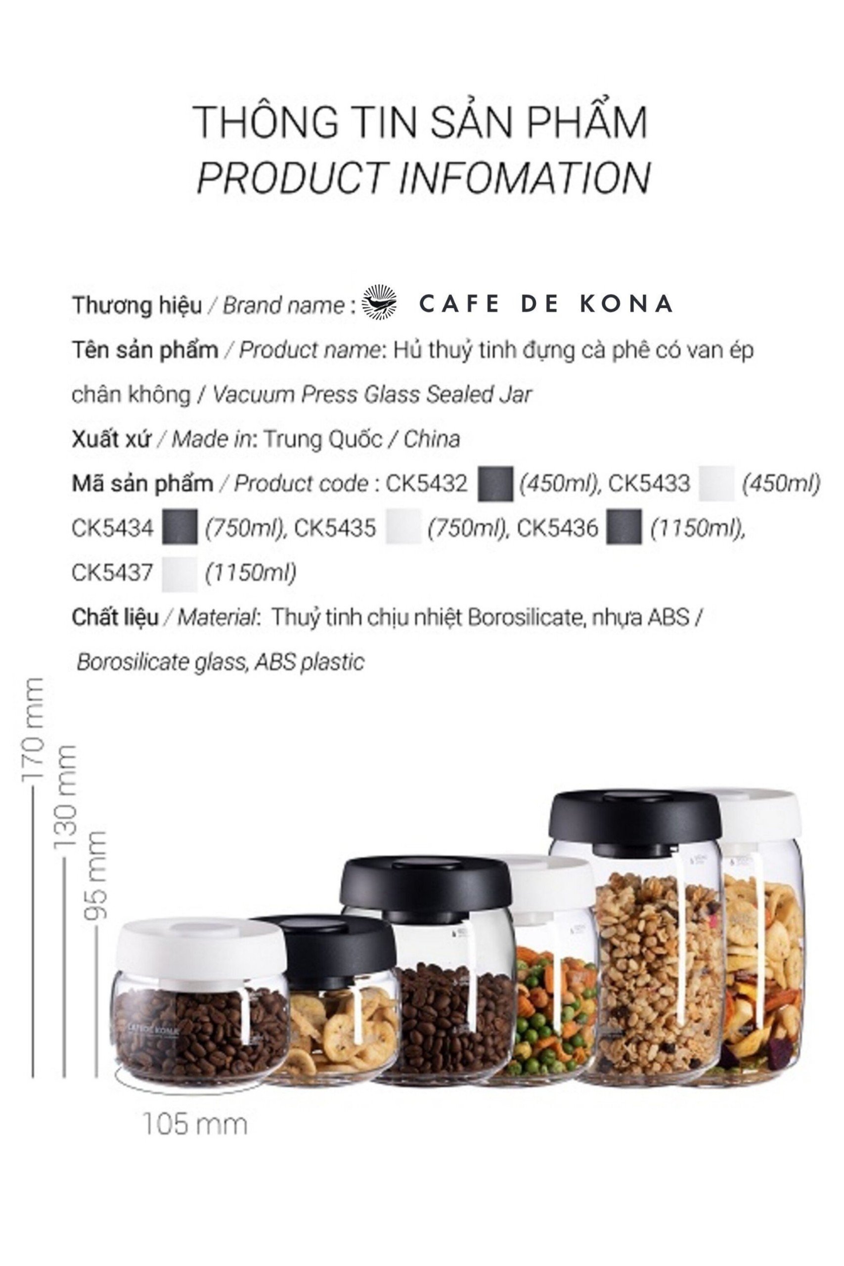 ⭐LỌ THỦY TINH HÚT CHÂN KHÔNG BẢO QUẢN THỰC PHẨM CAFEDE KONA ⭐