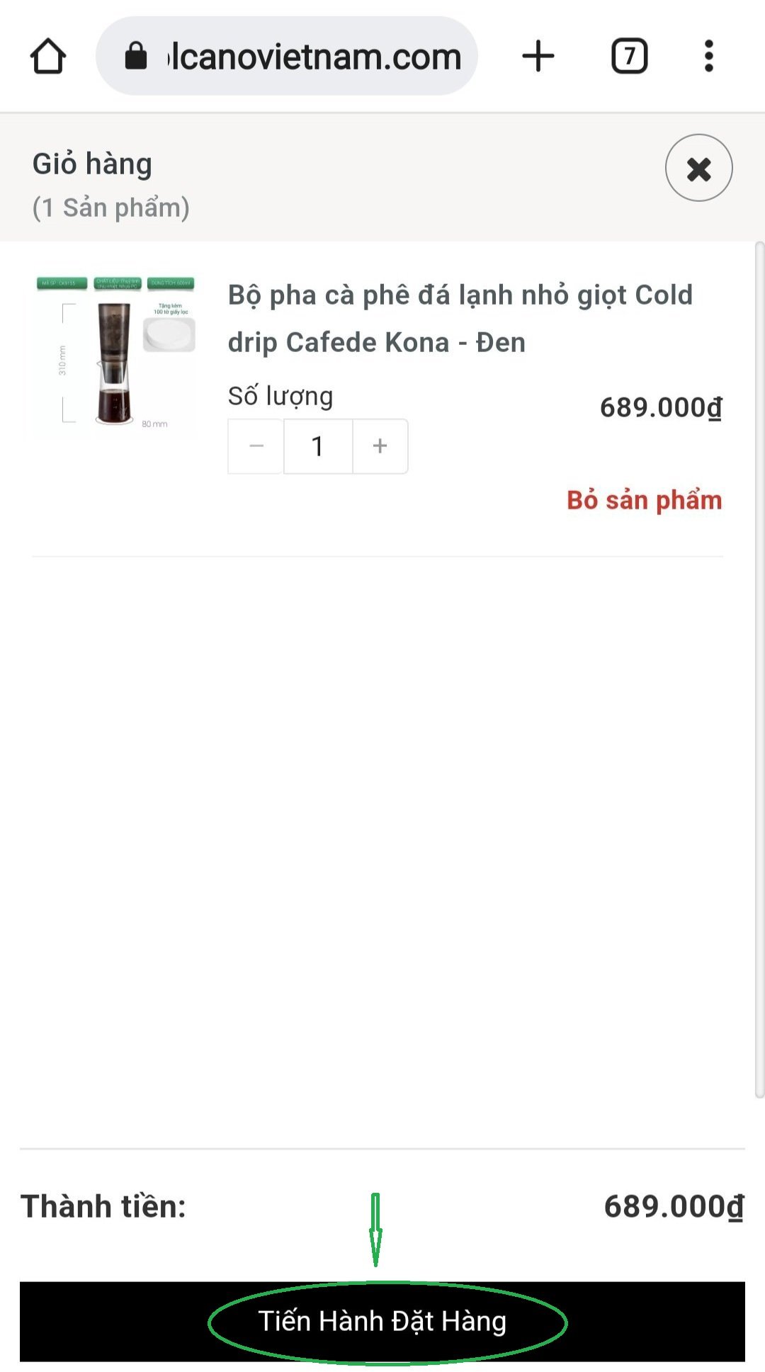 Kiểm tra lại đơn hàng lần nữa để chắc chắn các sản phẩm bạn đã chọn đúng và đủ số lượng rồi nhấn vào Tiến hành đặt hàng.
