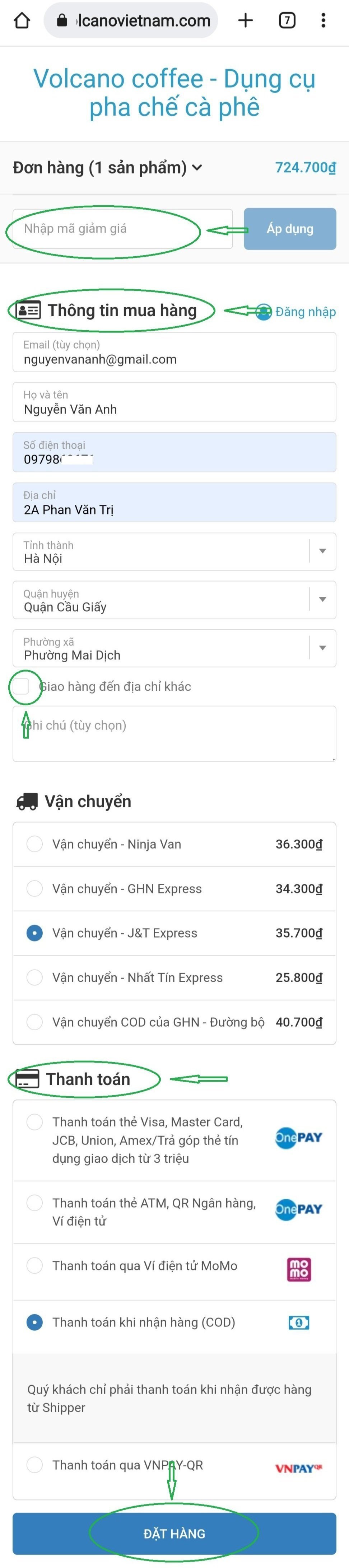 - Nhập mã giảm giá nếu có.