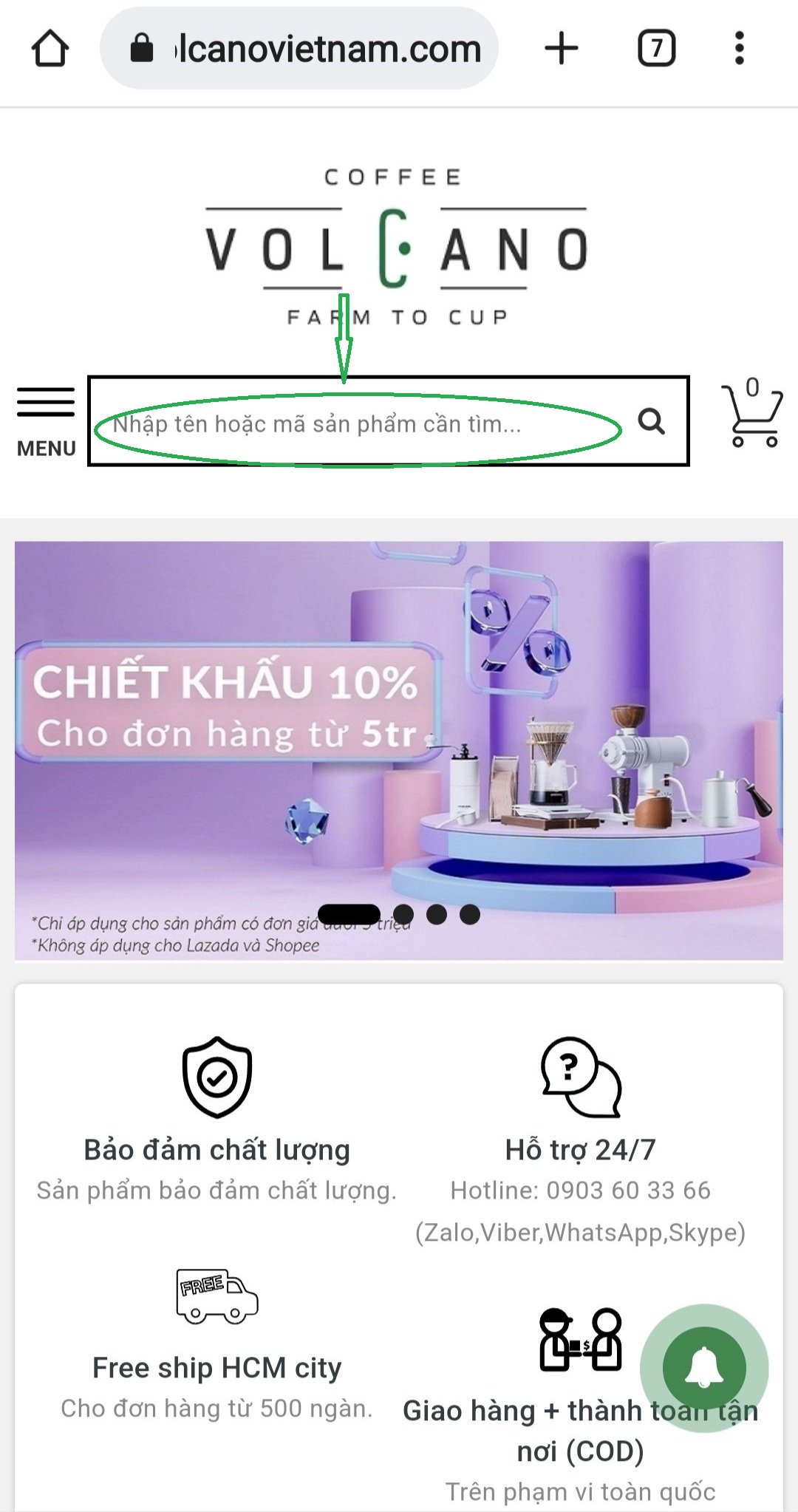 Bước 1: Truy cập vào trang web: https://volcanovietnam.com