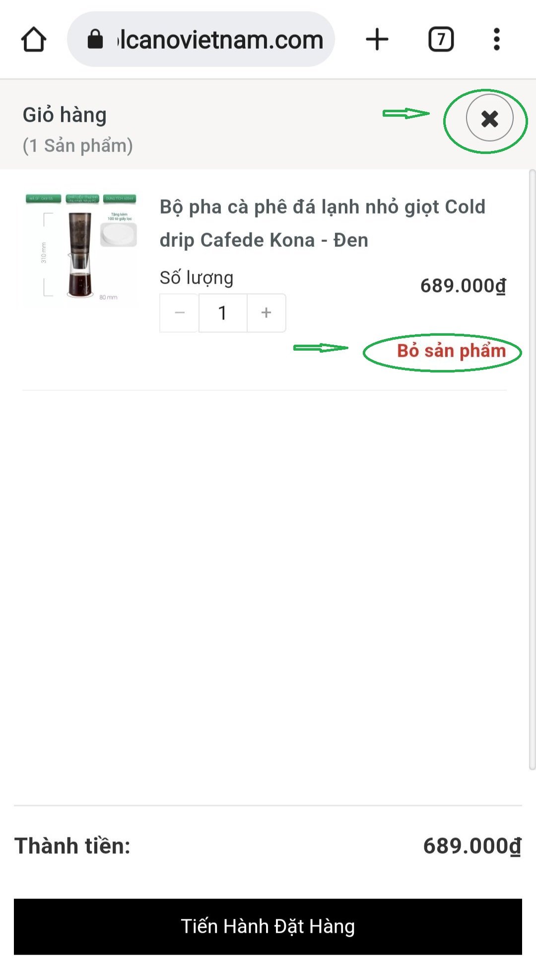 - Nếu sản phẩm bạn chọn không đúng thì bấm Bỏ sản phẩm để chọn lại sản phẩm mới bạn nhé.