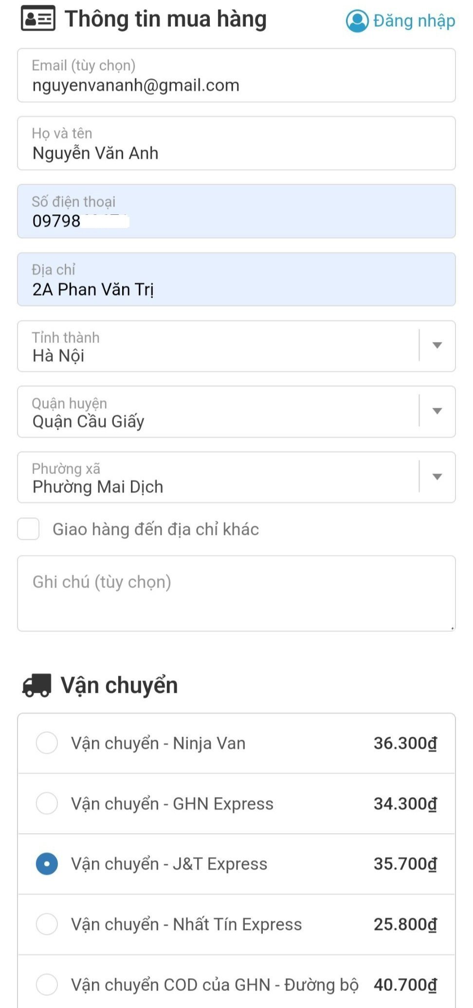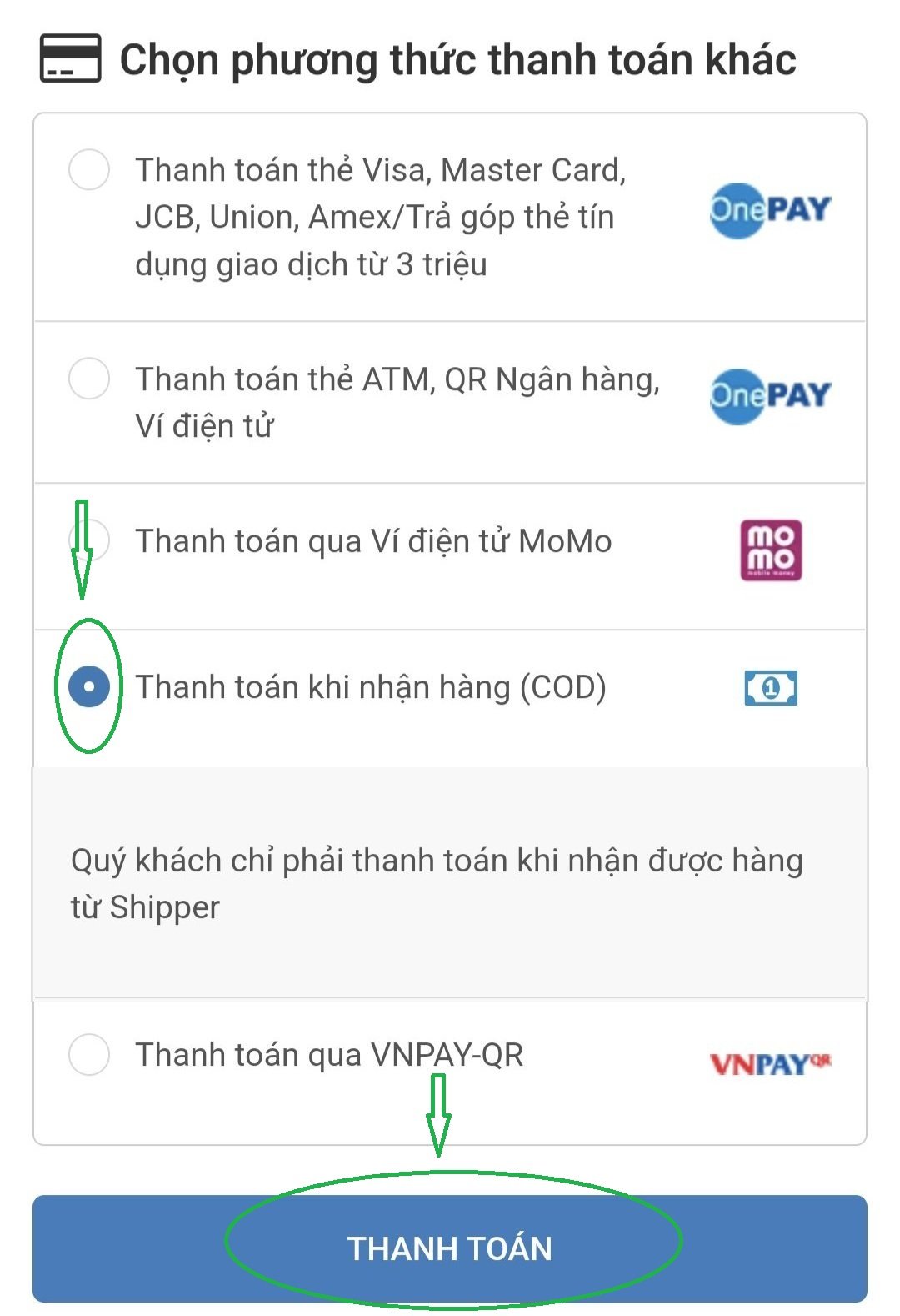 Thanh toán khi nhận hàng (COD)