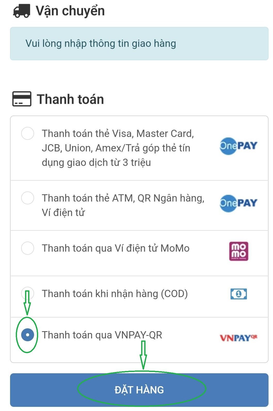 - Bước 3: Tiến hành thanh toán đơn hàng