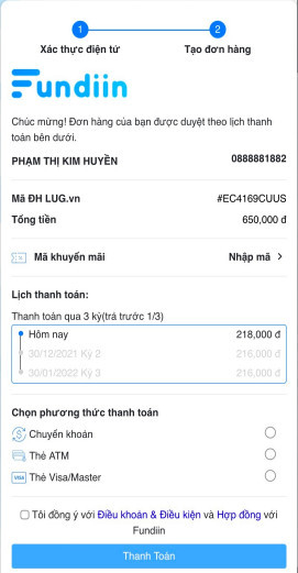 Mua trước trả sau qua Fundiin