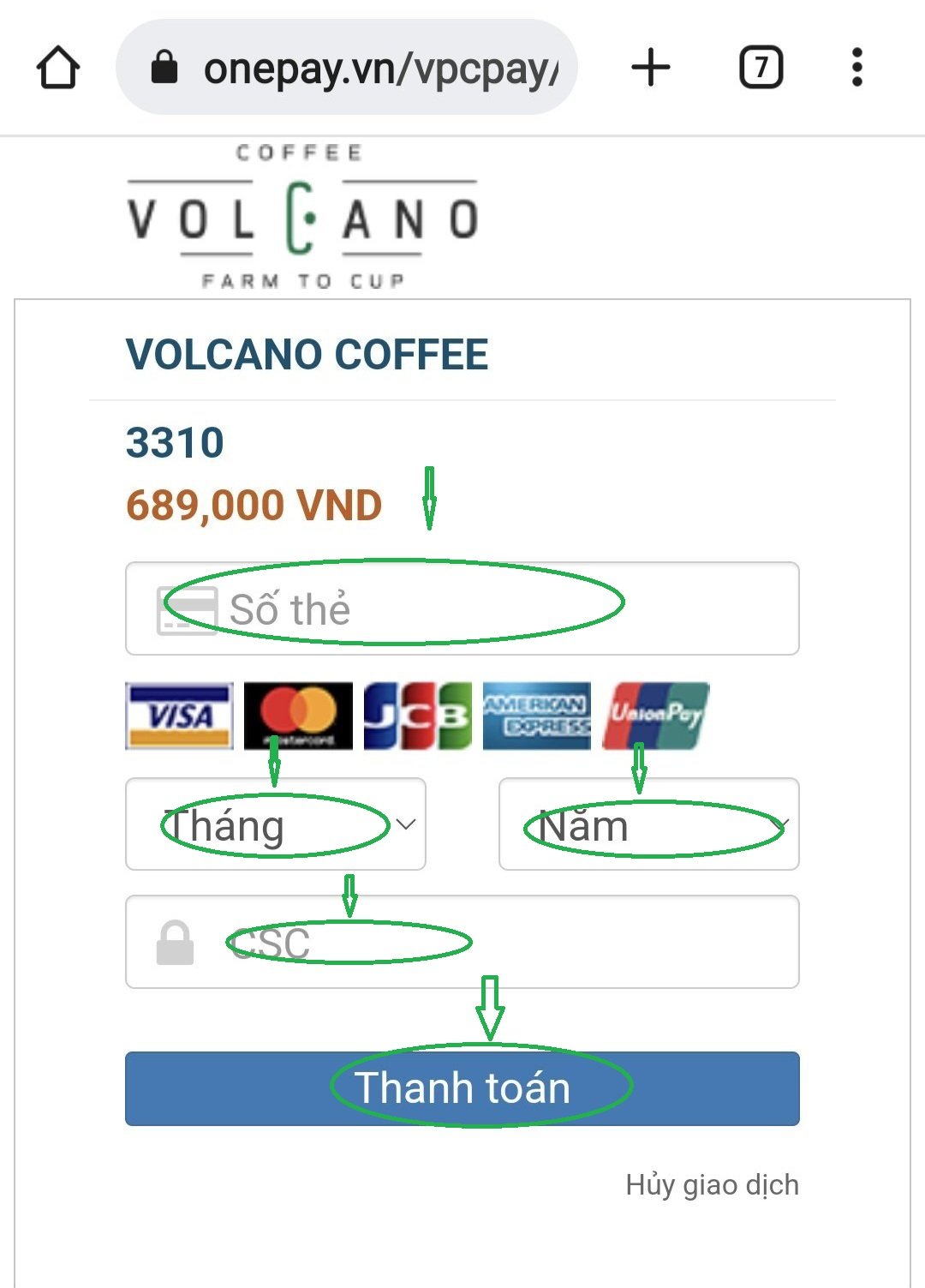 - Bước 4: Điền đầy đủ thông tin thẻ và bấm THANH TOÁN.
