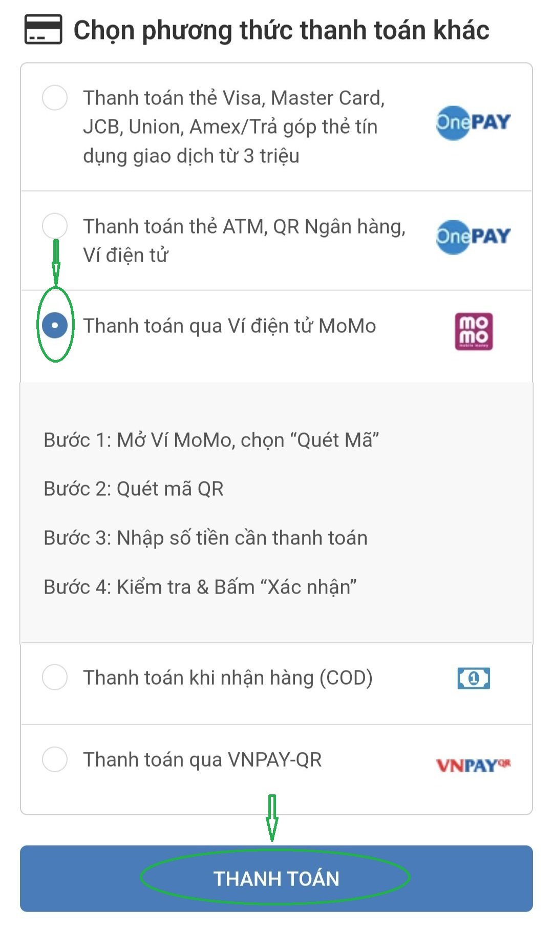 - Bước 3: Bấm THANH TOÁN