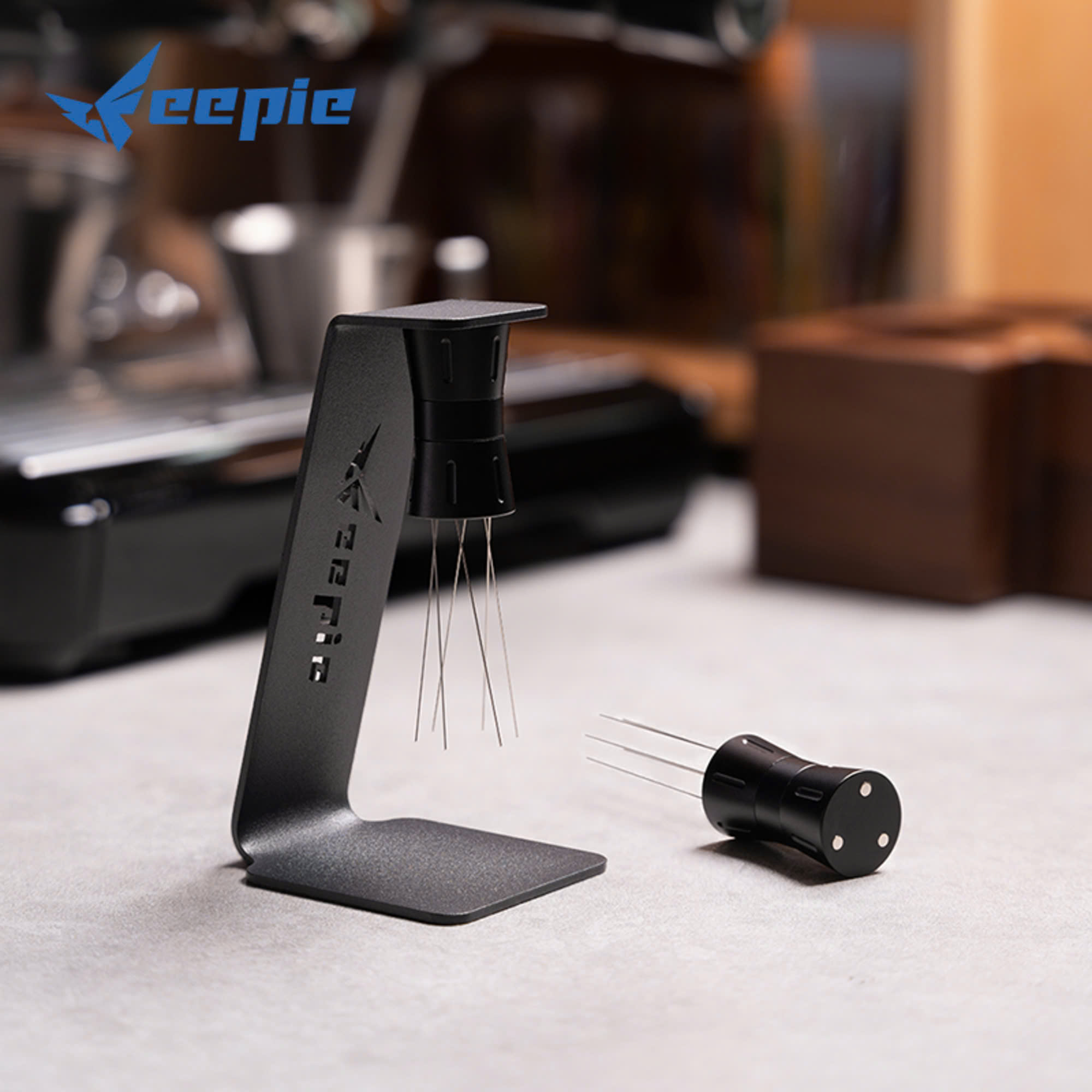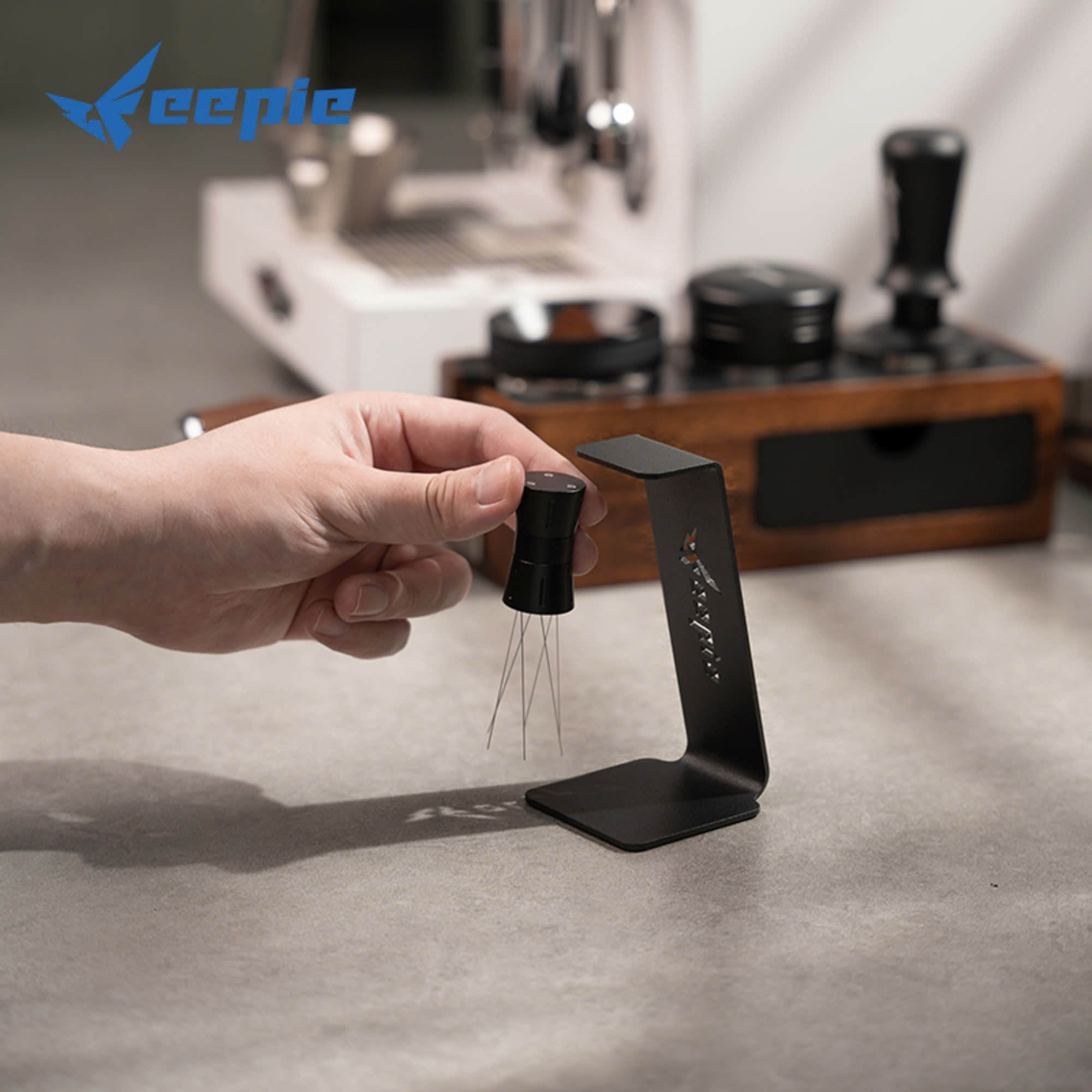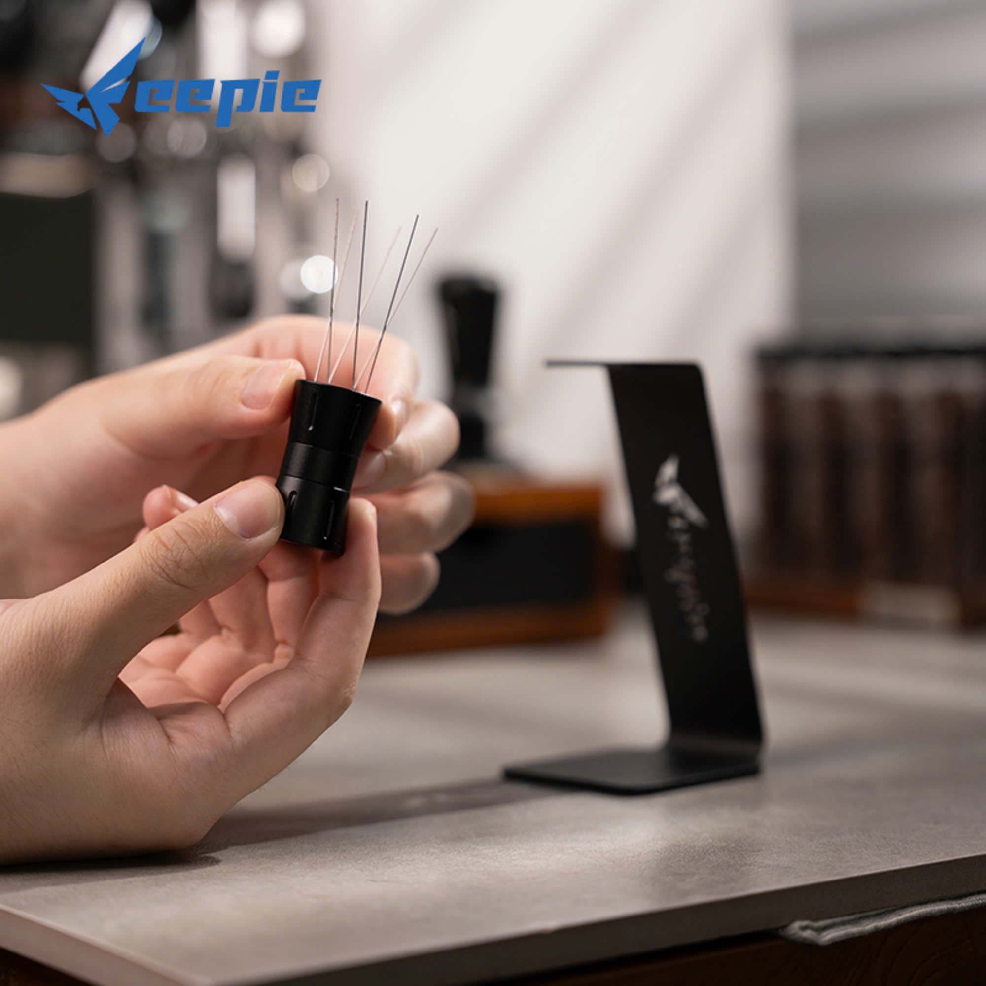 ✅ Giải pháp: Kim tán bột cà phê thông minh FEEPIE – giúp phân tán bột đồng đều, tạo bề mặt mịn trước khi nén.