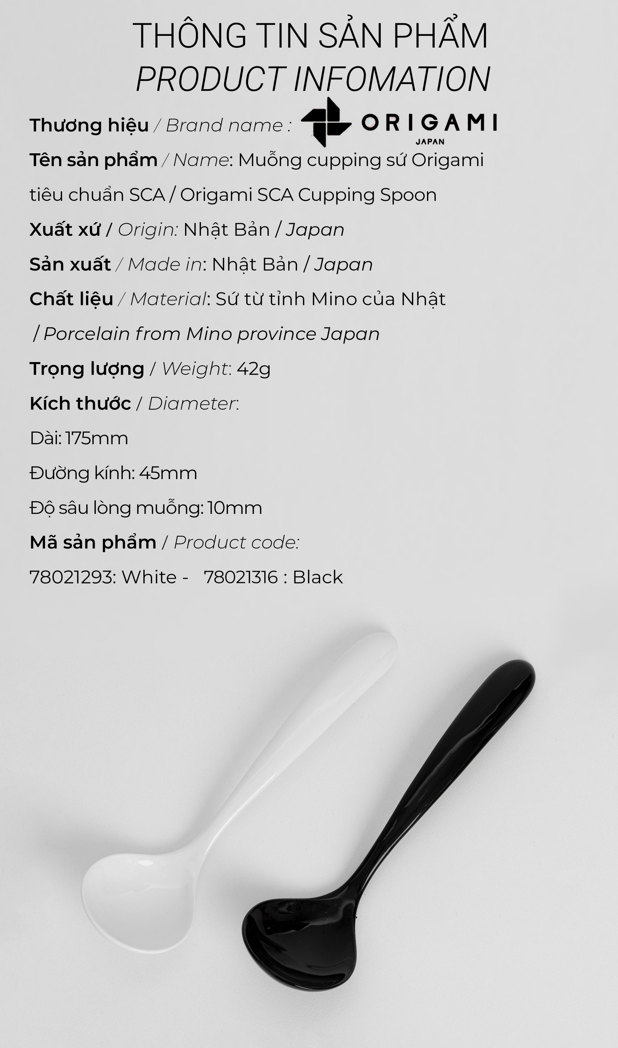 ✅ Hương vị của cà phê cũng bị ảnh hưởng 1 phần bởi chất liệu của bộ dụng cụ pha chế, và sẽ thay đổi đôi chút khi chuyển từ chất liệu này qua chất liệu khác. Hiểu được điều đó nên ORIGAMI đã cho ra đời chiếc muỗng cupping được làm bằng gốm sứ giống như cốc, để loại bỏ sự dao động trong cảm giác miệng (kết cấu khi bạn đưa vào miệng) do sự khác biệt về vật liệu khi thử nếm. Bạn có thể đánh giá hương vị cà phê thuần túy hơn bằng cảm giác của mình với chiếc muỗng cupping này.