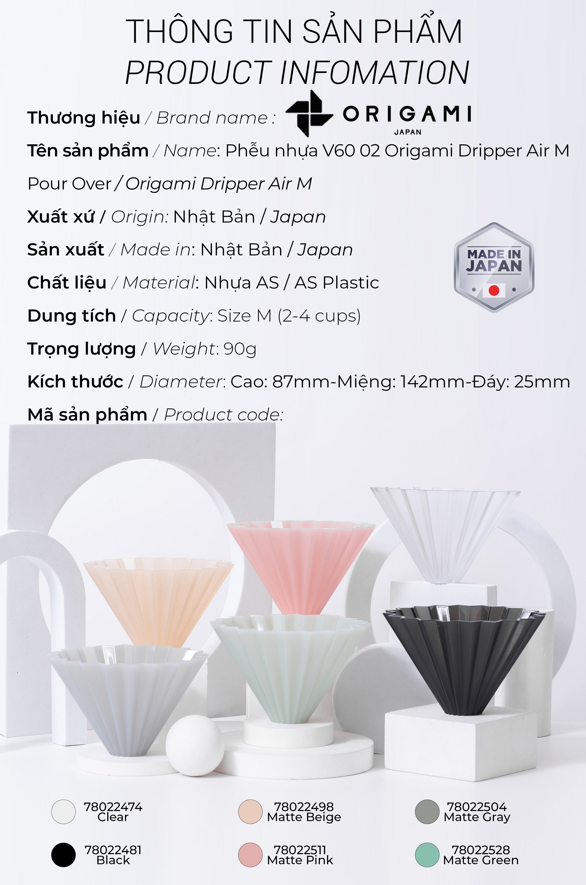 🌪🌪 PHỄU NHỰA V60-02 ORIGAMI DRIPPER AIR M POUR OVER 🌪🌪