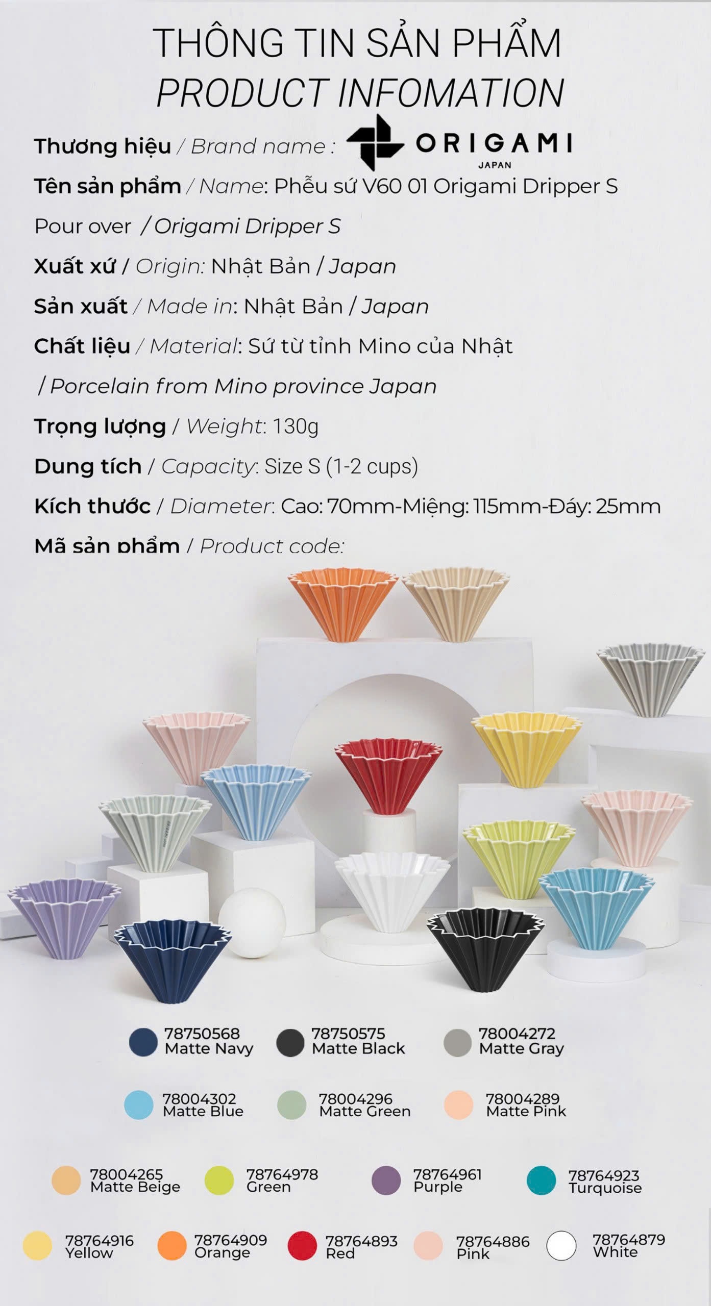 🔥🔥 PHỄU SỨ V60-01 ORIGAMI DRIPPER S POUR OVER 🔥🔥