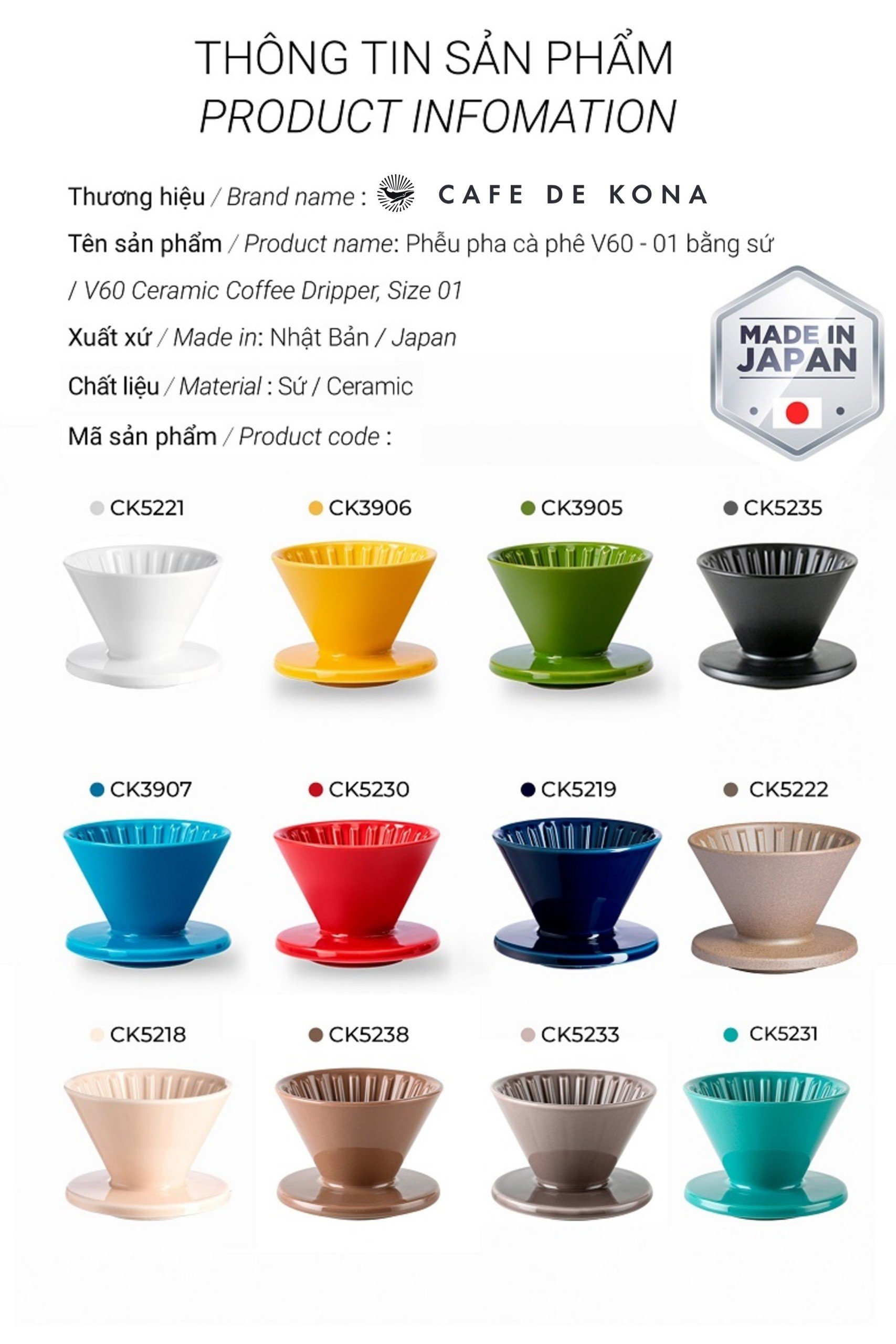 🔸Phễu V60 sứ phù hợp sử dụng với giấy lọc cà phê của hãng Hario, Akirakoki, Cafede Kona cùng cỡ.