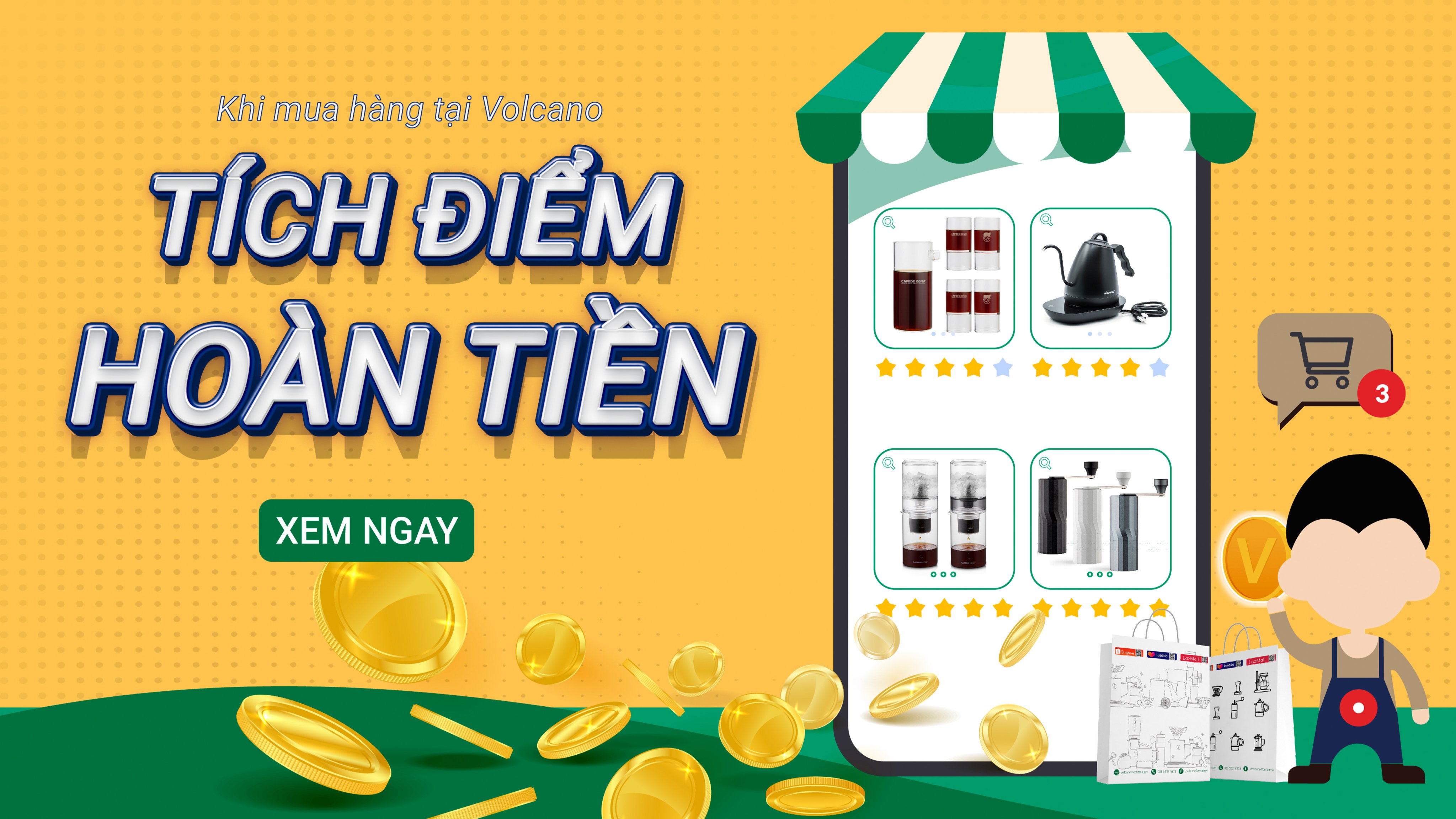 Khi mua hàng với hóa đơn từ 50 ngàn trở lên bạn sẽ tích luỹ được 01 điểm. 01 điểm có thể đổi được 500 đồng. Điểm được tích có thể cộng dồn và sử dụng thanh toán cho các đơn hàng mua tại Volcano.